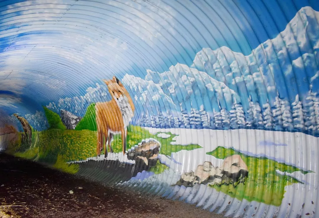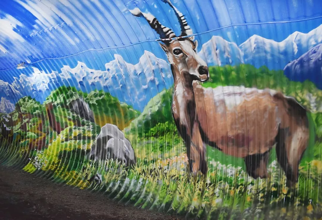 В тоннеле на курорте «Роза Хутор» завершился масштабный проект по оформлению стен граффити с пейзажами и животными Сочинского национального парка.