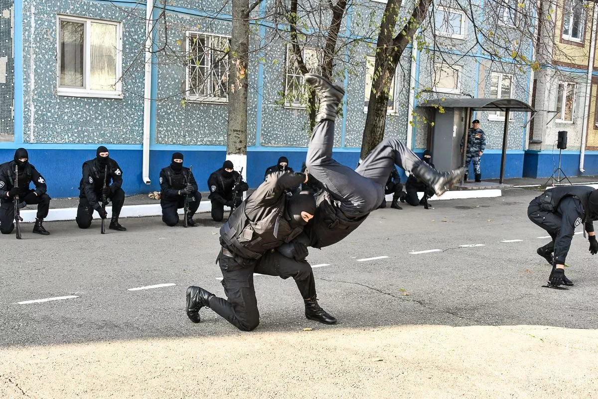 После завершения официальной части бойцы ОМОН провели показательные выступления, продемонстрировали специальную технику и вооружение.
