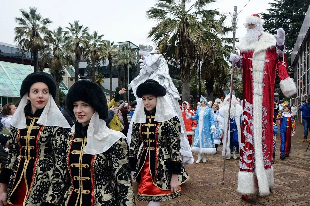 Парад с участием сказочных персонажей состоялся на курорте 23 декабря.