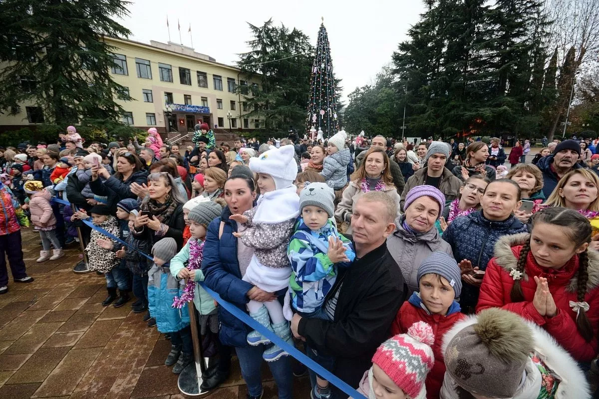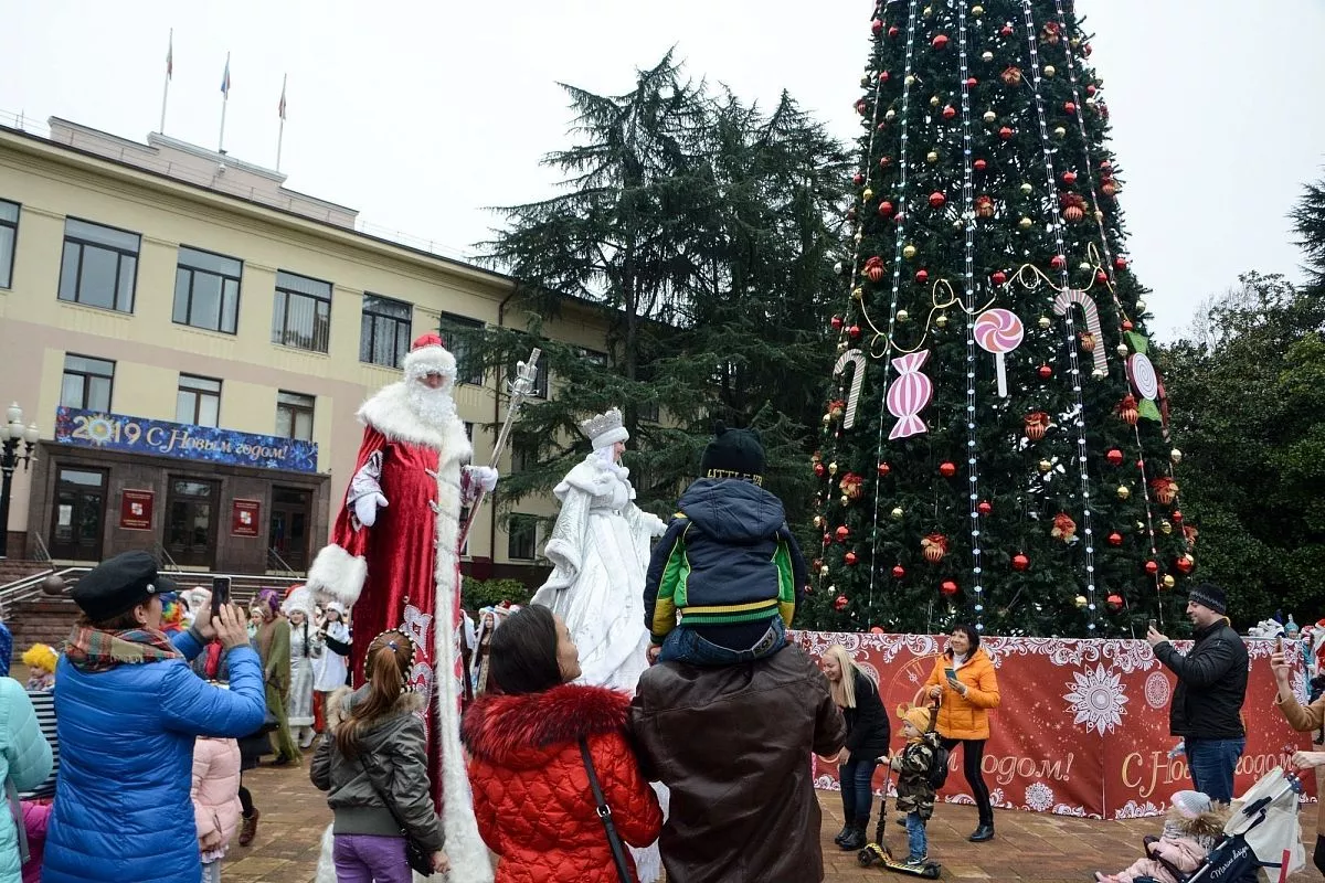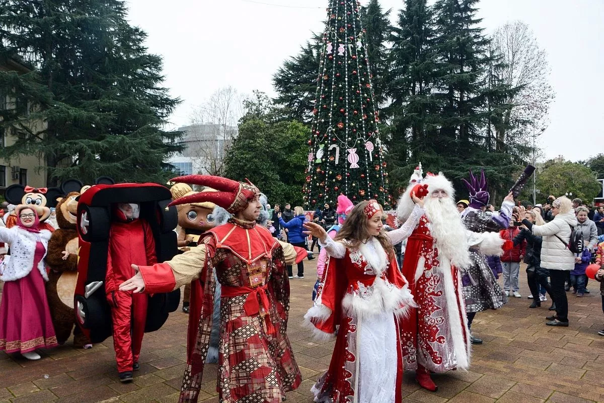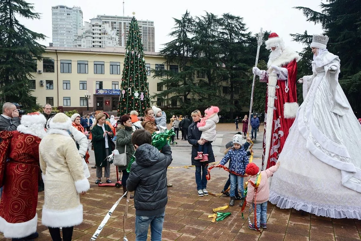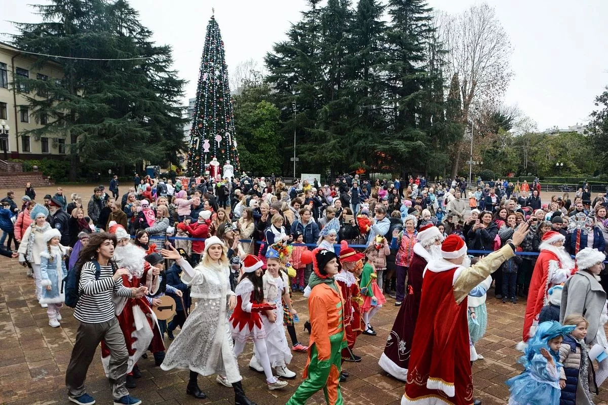 Костюмированное шествие прошло по пешеходной улице Навагинская. Мероприятие завершилось торжественным открытием главной елки курорта.