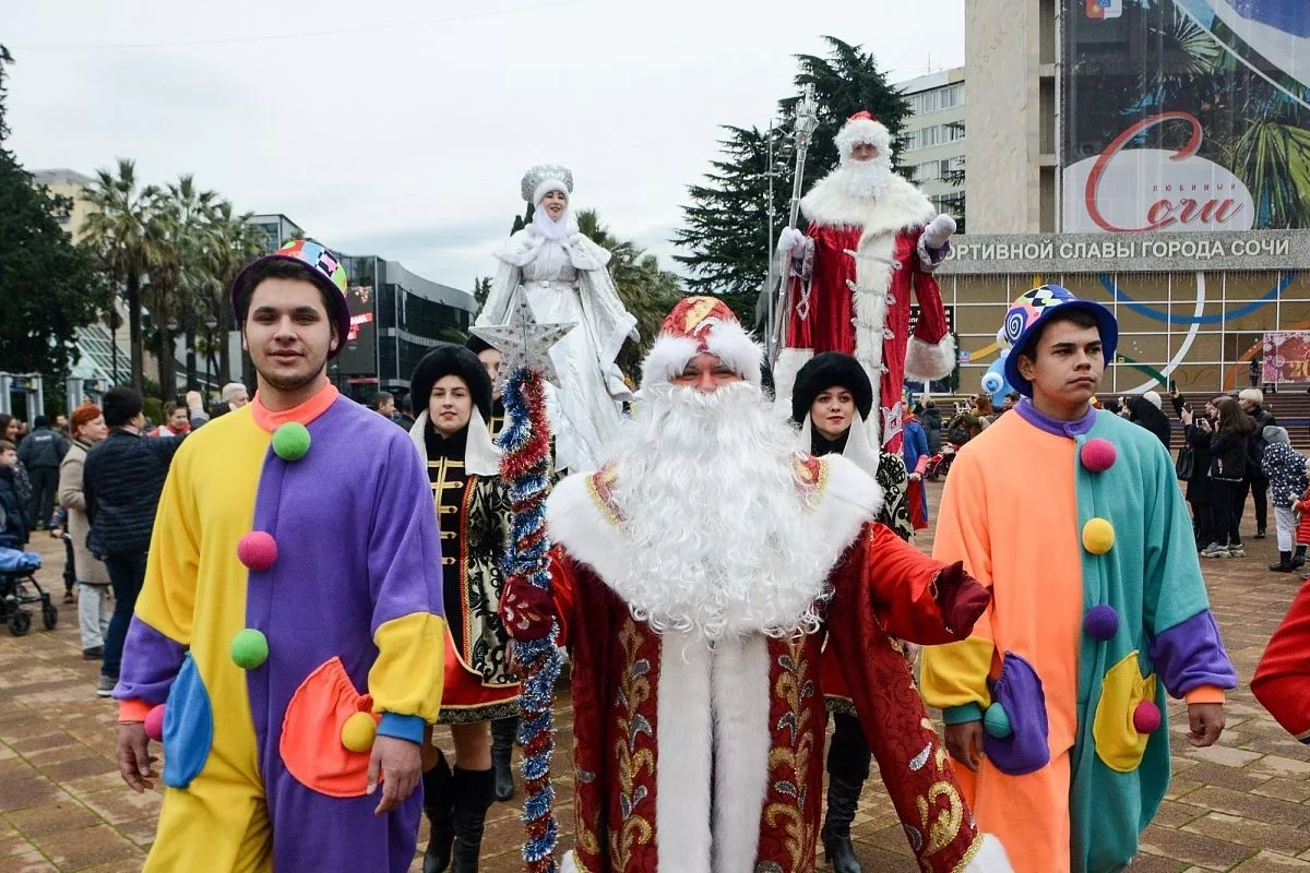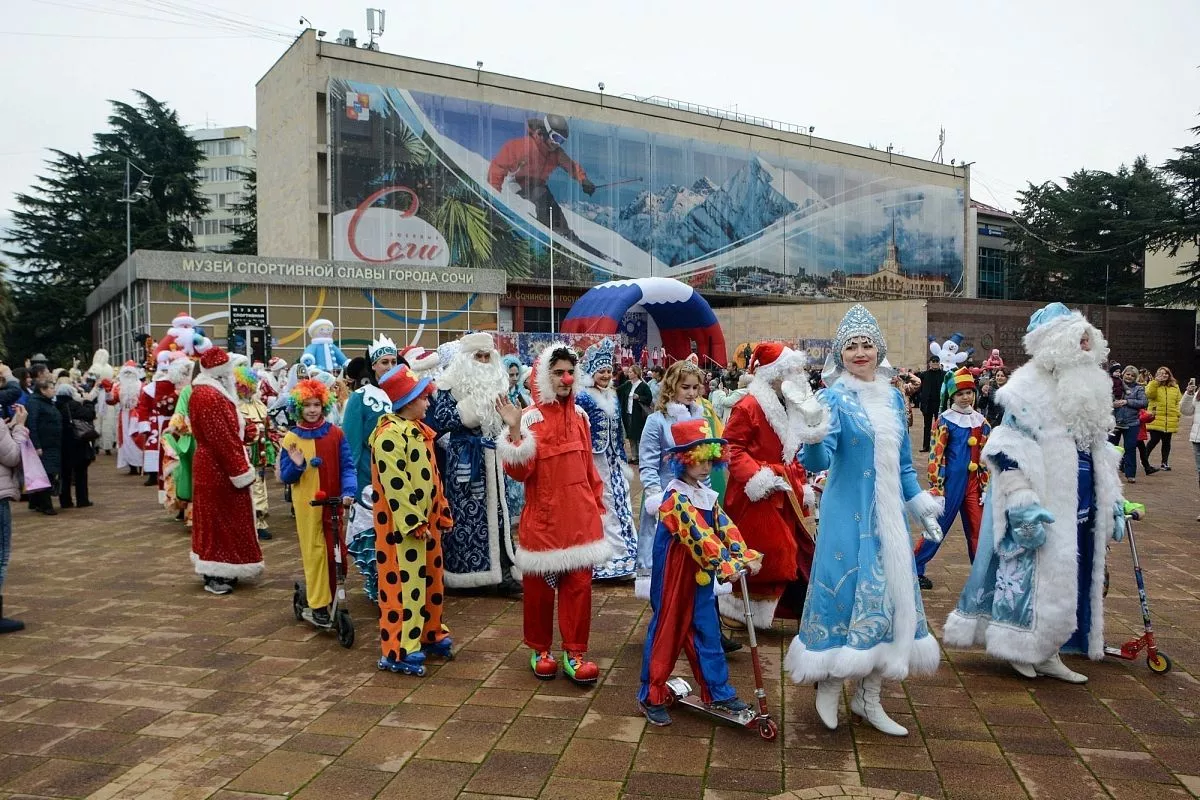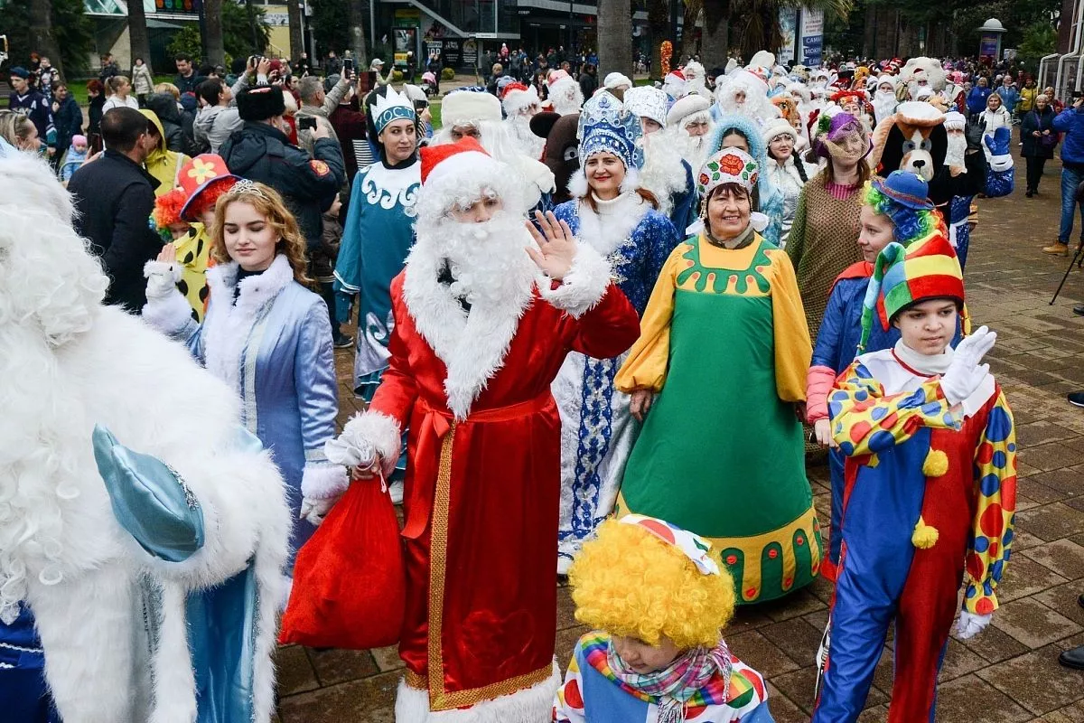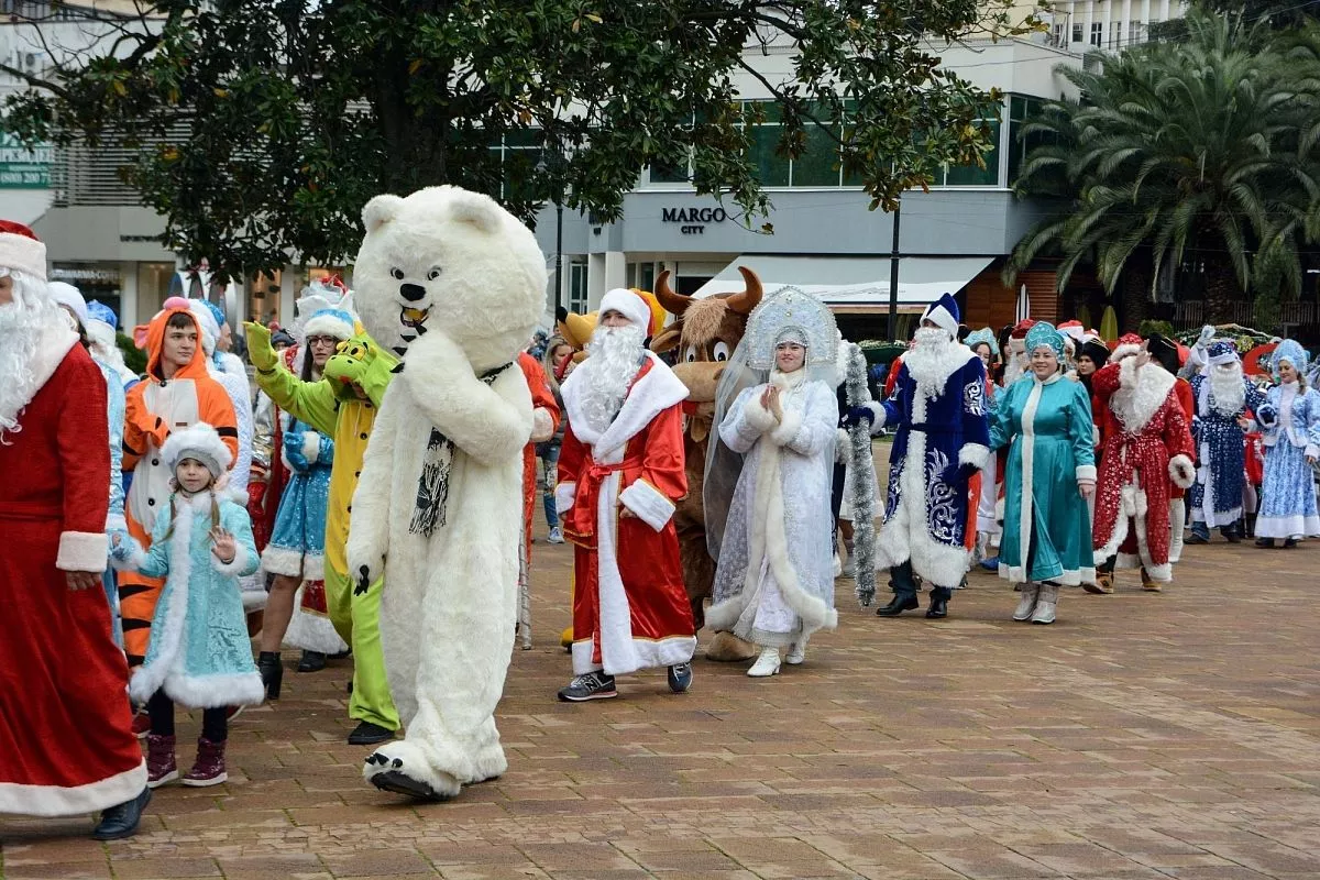 В Сочи начались праздничные предновогодние мероприятия. Старт им дал парад с участием Дедов Морозов, Снегурочек, а также сказочных персонажей.
