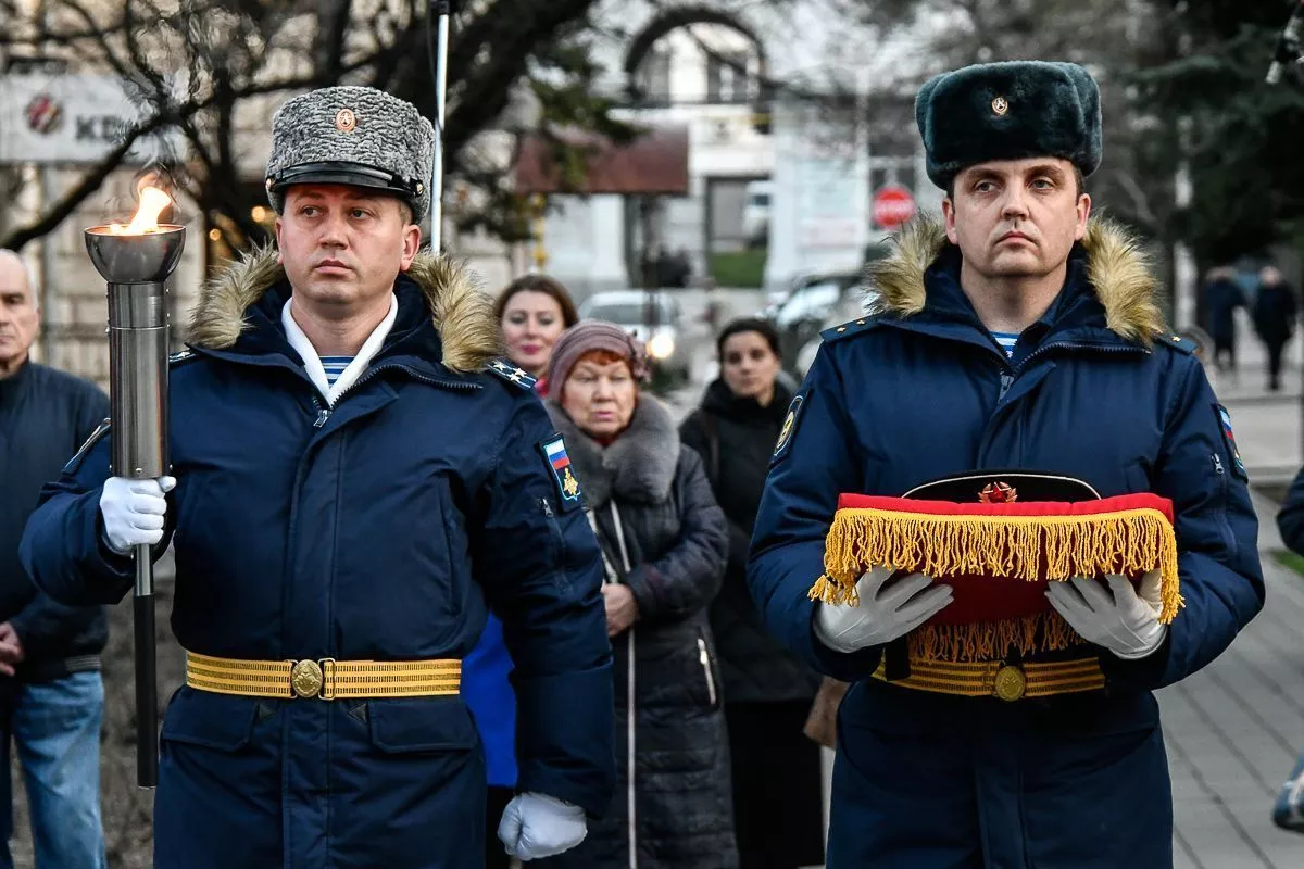 По традиции в этот день на площади Героев состоялся ритуал зажжения факелов от Вечного огня.