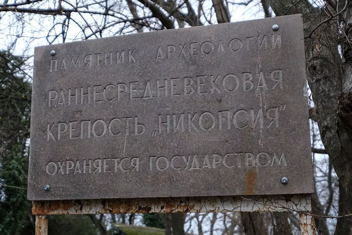 На въезде на мыс Бескровный, что возвышается над поселковым пляжем, с левой, юго-восточной стороны Михайловской бухты, прикреплена табличка с облупившейся краской: «Археологический памятник «Крепость Никопсия» (Дузу-Кале) V – VI вв. н.э. Охраняется государством. Охраняемая зона 200 на 200 м».