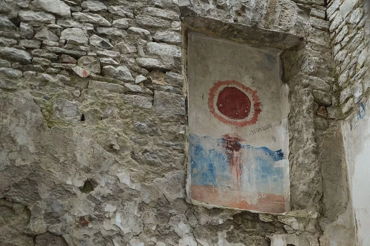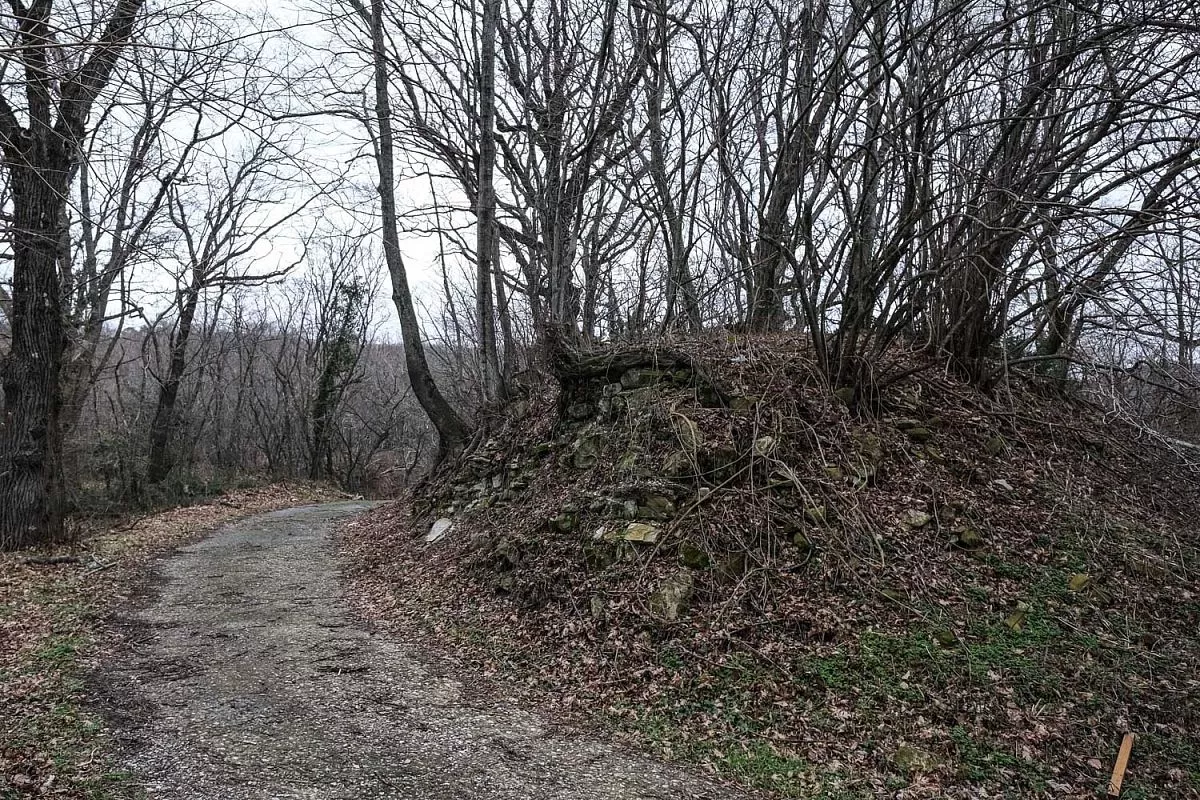 Здесь еще сохранились фрагменты старинной каменной кладки в зарослях. Причем сделаны они не на цементе, как строят сегодня, а на известковом растворе.