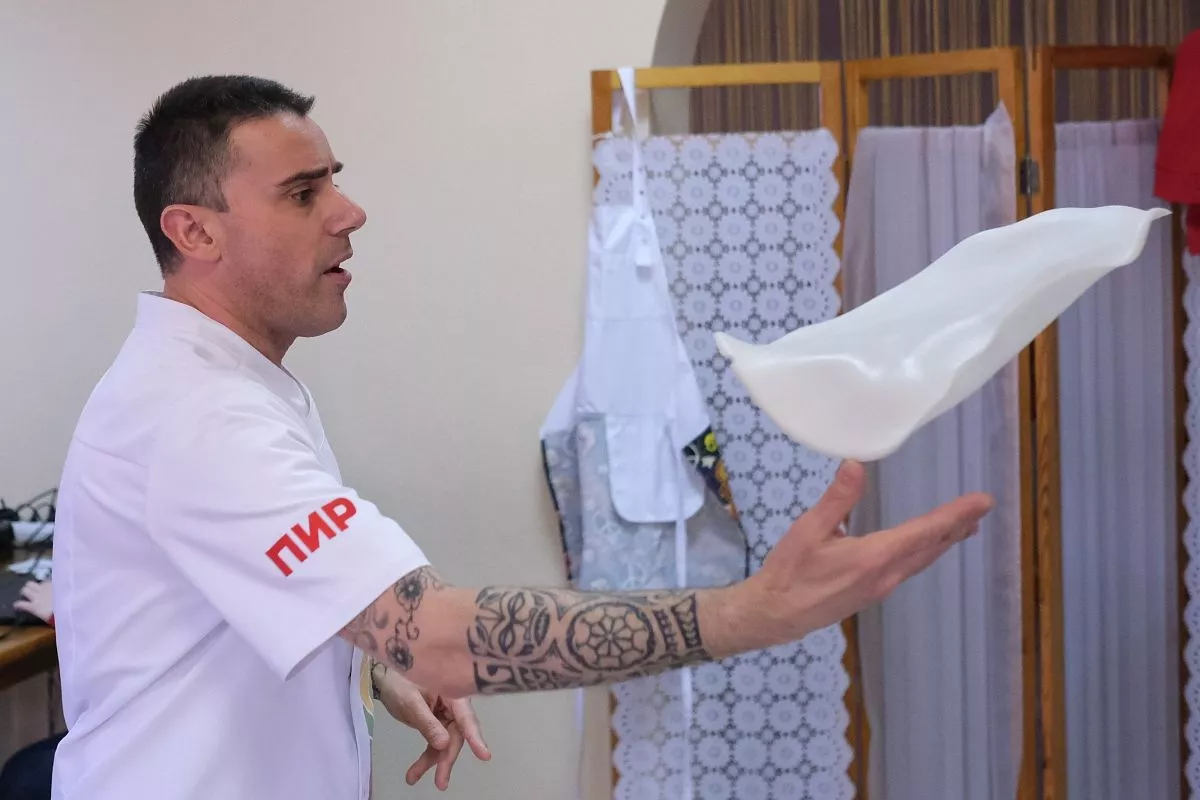 – В «Пицца-акробатика» участники под музыку демонстрируют определенные элементы с тестом. По сути, это должен получиться головокружительный танец. Но и практический смысл у этих упражнений есть: так можно очень быстро сделать из заготовки равномерно тонкую основу для пиццы. Здесь уровень местных пиццайоло пока слабенький.