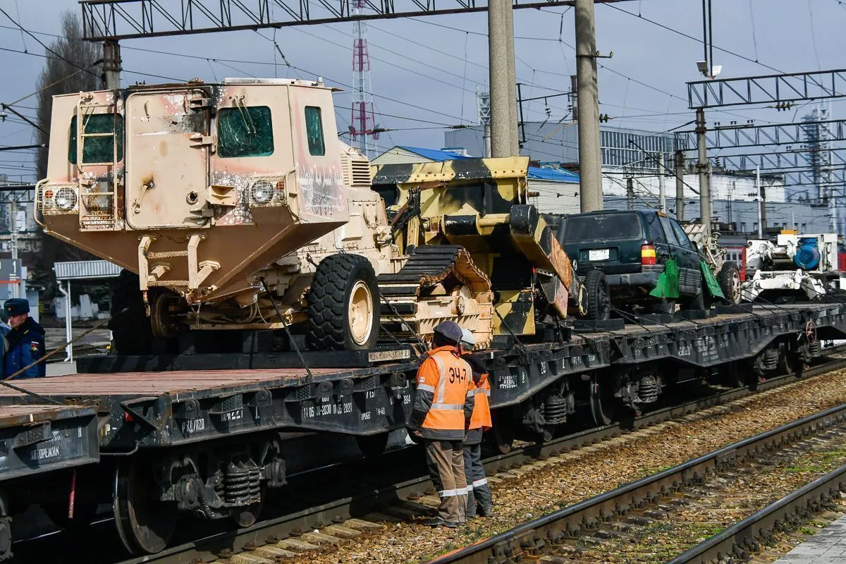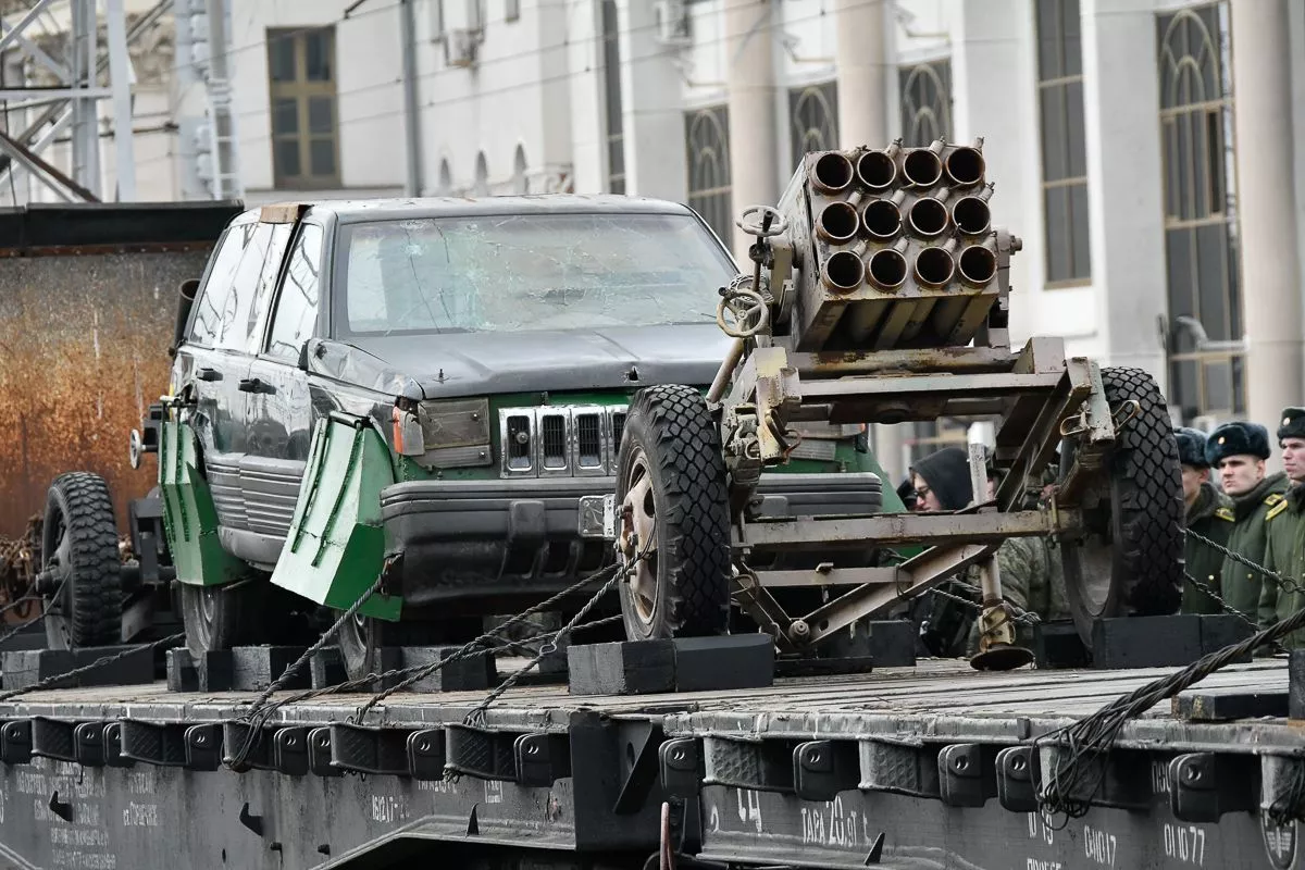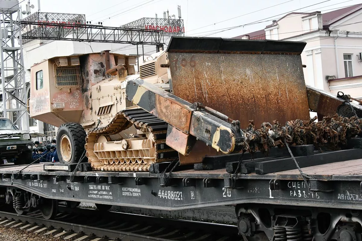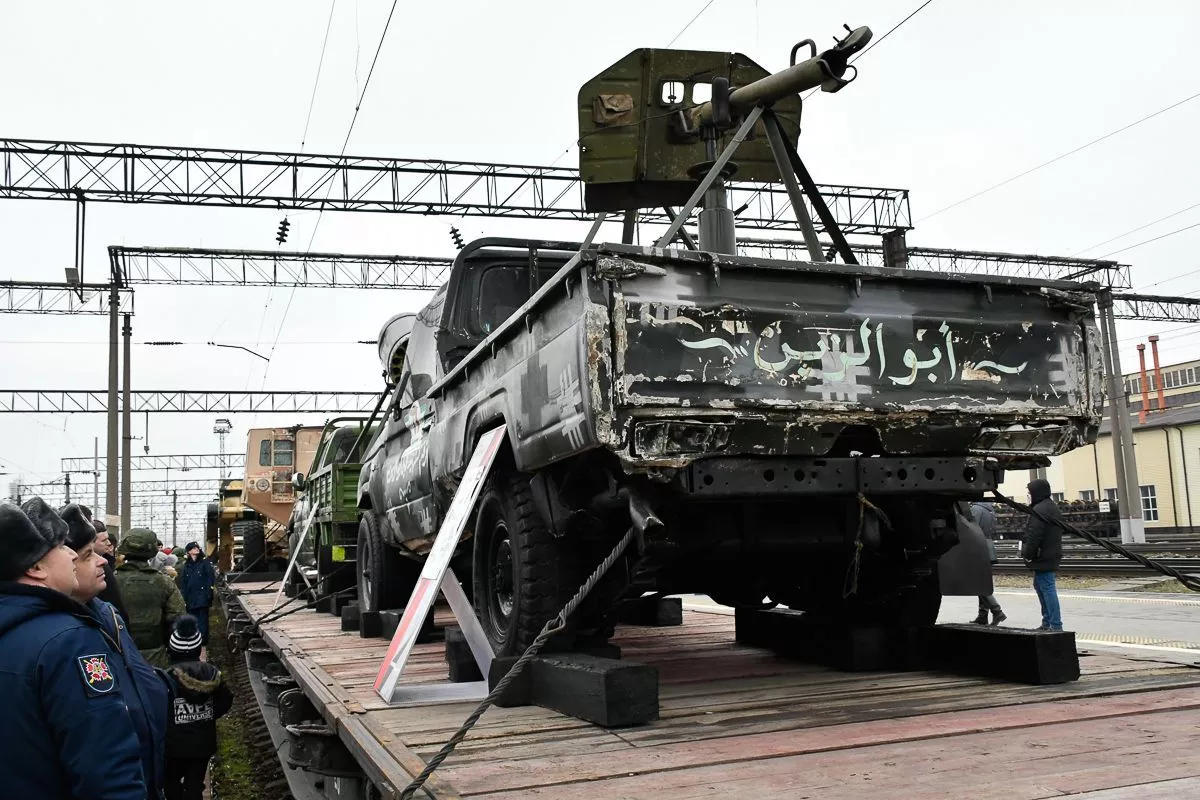 После торжественной части мероприятия жители и гости кубанской столицы смогли посетить передвижную выставку с демонстрацией трофейной техники и вооружения. На девяти железнодорожных платформах размещены образцы трофейной военной техники. В четырех вагонах представлены экспозиции ракетно-артиллерийского вооружения, беспилотных летательных аппаратов, инженерных войск, химического оружия и многое другое. В одном из вагонов можно было увидеть работы военных художников и фотографов.