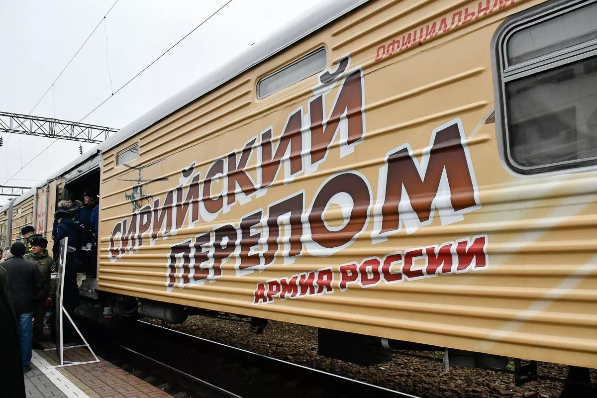 Напомним, специальный поезд военно-исторической акции «Сирийский перелом» отправился в День защитника Отечества с Казанского вокзала Москвы. Железнодорожный состав за 64 дня преодолеет почти 29 тысяч километров и финиширует 27 апреля в подмосковной Кубинке . Поезд сделает остановки в 60 городах страны.