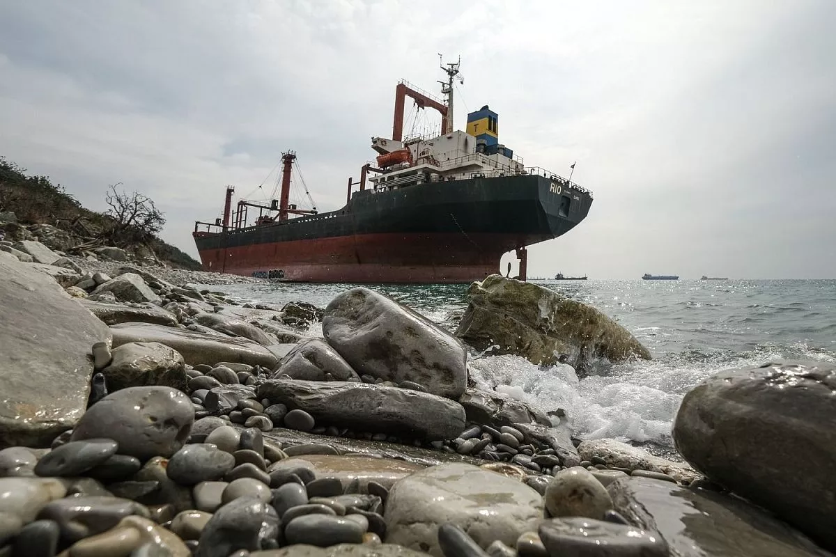 В ночь на 12 декабря 2018 года сухогруз Rio под флагом Того (это страна в Западной Африке) выбросило на мель в районе якорной стоянки новороссийского порта под Кабардинкой.