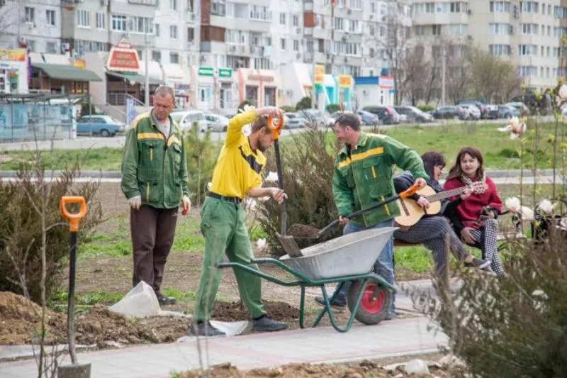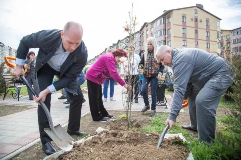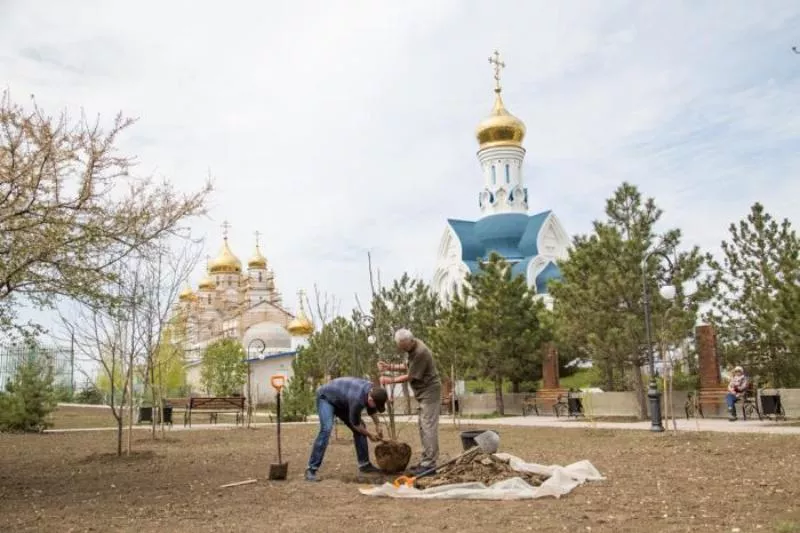 В Анапе продолжается озеленение по инициативе Юрия Полякова. Высаживают сосны, сакуры, липы и кустарники.