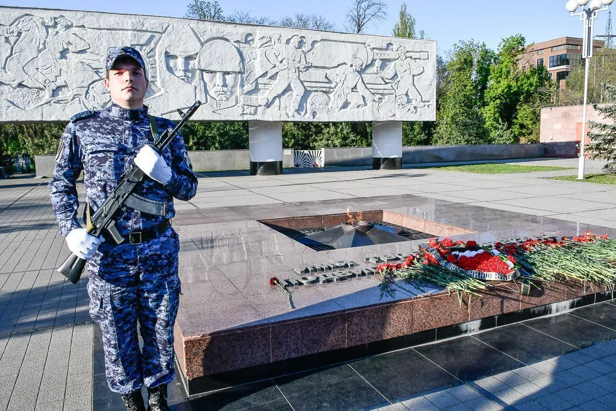 В нем принимают участие сотрудники и военнослужащие Росгвардии, ветераны войск правопорядка, активисты общественных организаций, учащиеся учебных заведений.