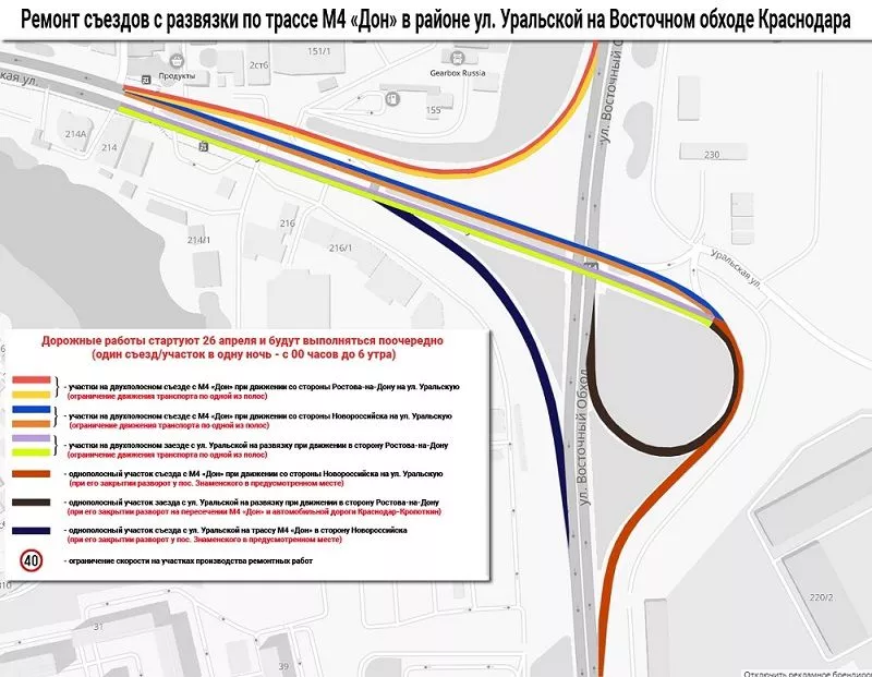 С 26 апреля на Восточном обходе Краснодара отремонтируют съезды с развязки по трассе М4 «Дон» в районе улицы Уральской.