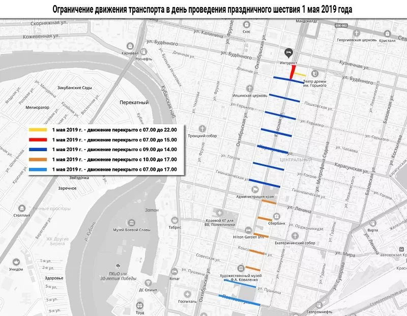 1 мая в Краснодаре на улице Красной и еще нескольких прилегающих улицах будет ограничено движение автомобилей.