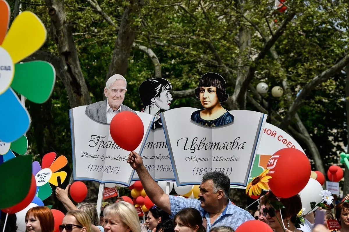 В праздничной колонне прошли губернатор края Вениамин Кондратьев, председатель ЗСК Юрий Бурлачко, заместители главы региона, мэр Краснодара Евгений Первышов, жители города.