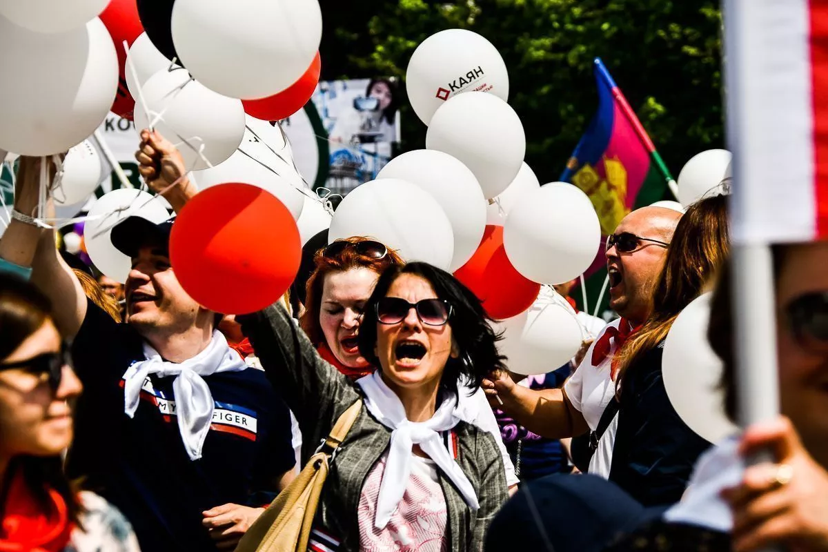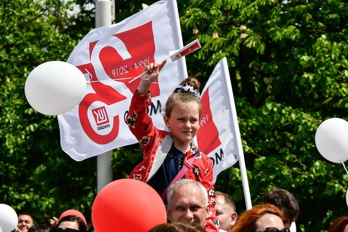 В одну колонну встали представители трудовых коллективов, политических партий и общественных движений, профессиональных союзов и ветеранских организаций.
