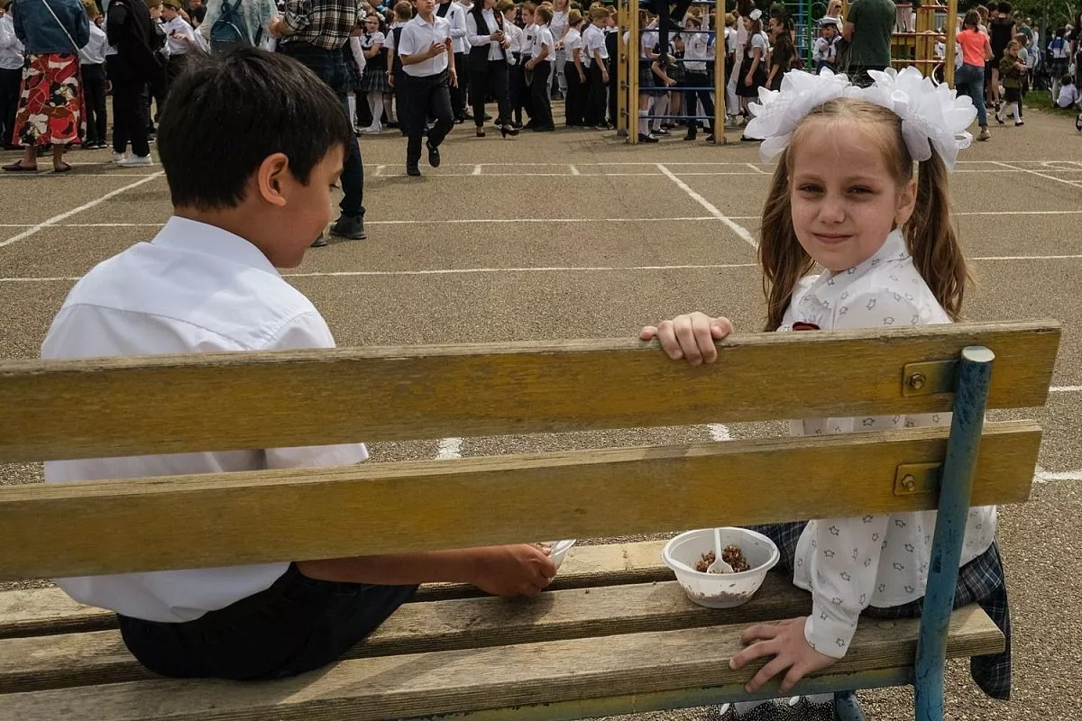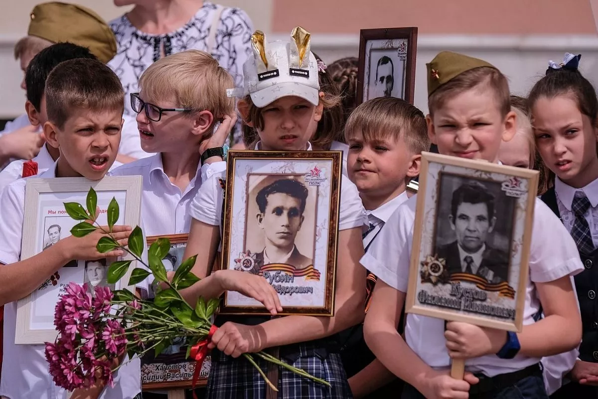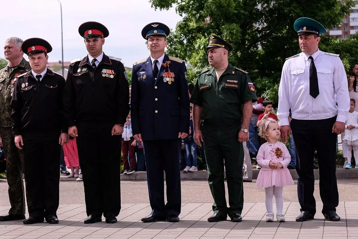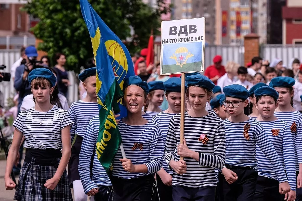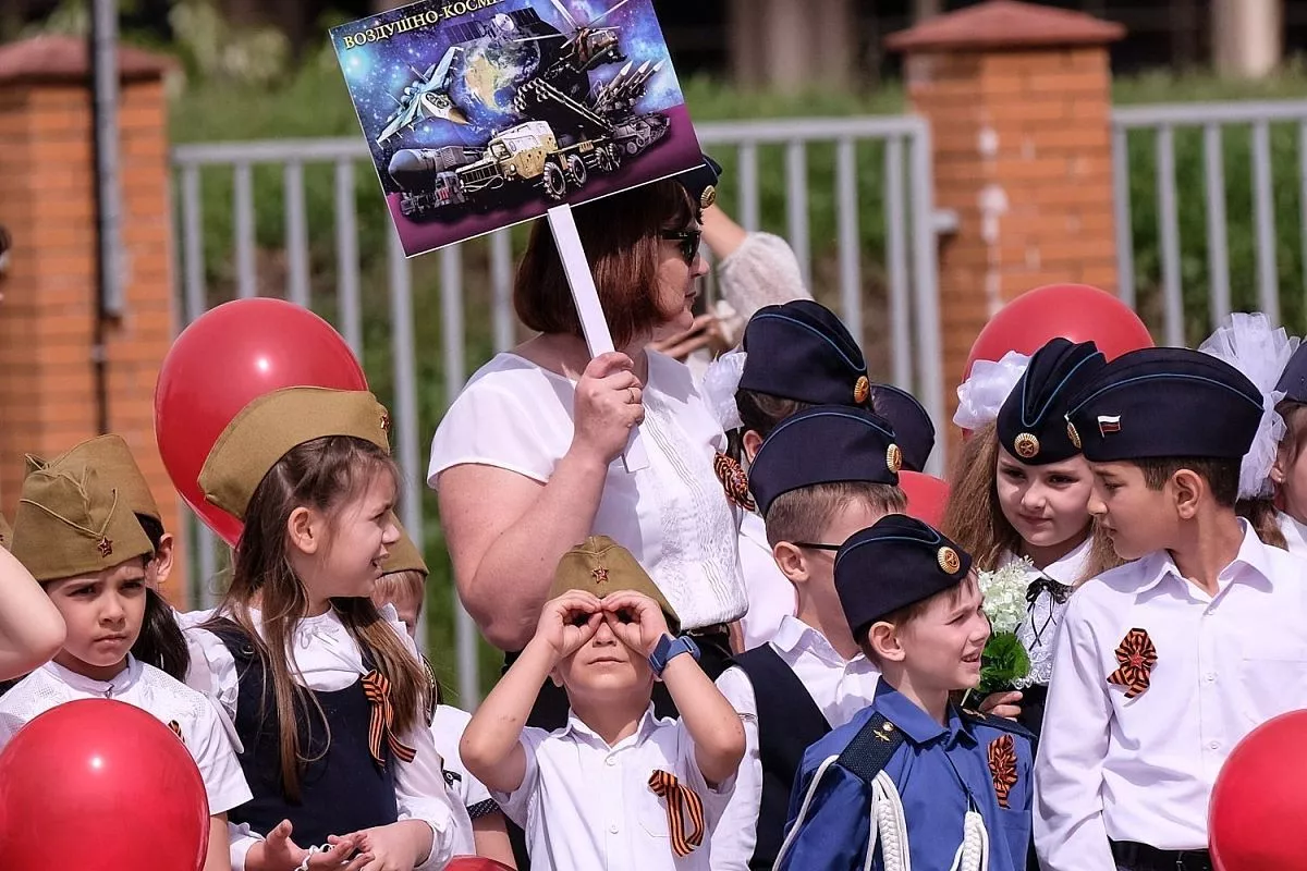 Перед ветеранами Великой Отечественной войны и Вооруженных сил и участниками локальных войн торжественным маршем прошли более тысячи детей - ученики школы № 98, кадеты Краснодарского президентского кадетского училища, воспитанники детского сада № 100, юнармейцы. По школьному плацу, чеканя шаг, шли юные пехотинцы и моряки, артиллеристы и военная разведка, летчики и танкисты.