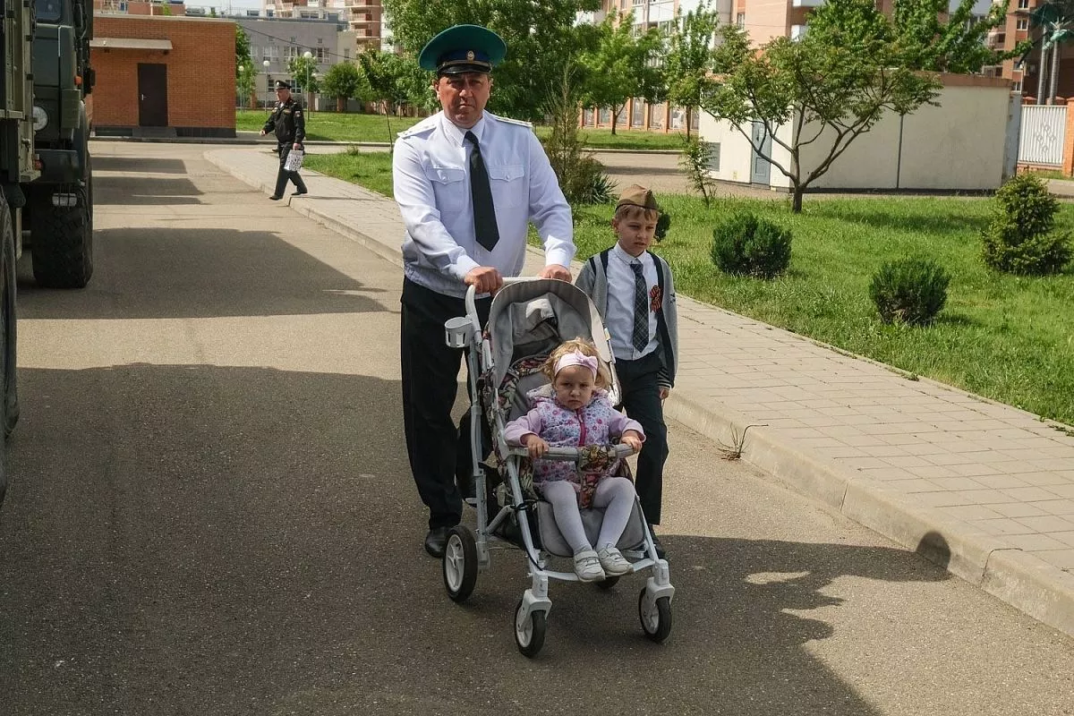 Принимал парад инспектор объединенного стратегического командования Южного военного округа генерал-майор Николай Калабухов. Открыли марш-парад знаменная группа школы № 98 и воспитанники ансамбля барабанщиков «Ритм» Краснодарского президентского кадетского училища под руководством Александра Володина.