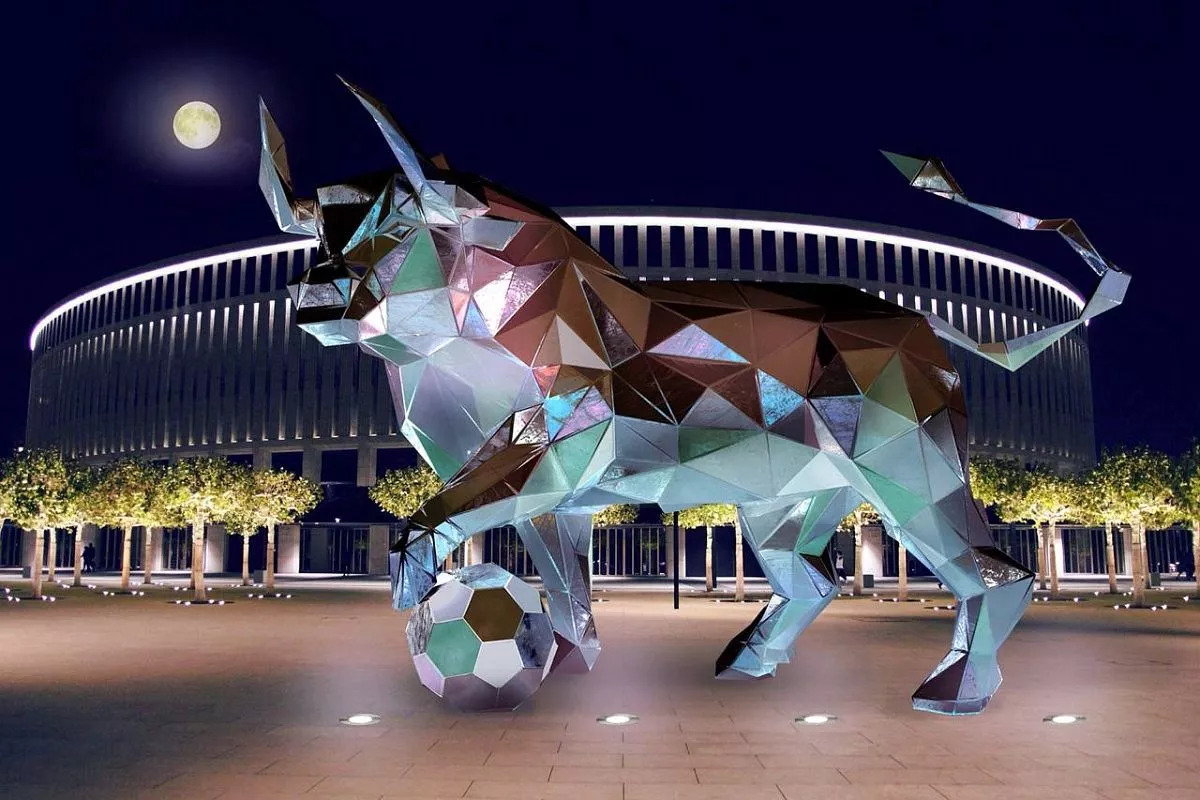 Первый объект «Бык» - символ футбольного клуба «Краснодар». Его дизайн разработан на контрасте с окружающей средой, но при этом вписывается в пространство.