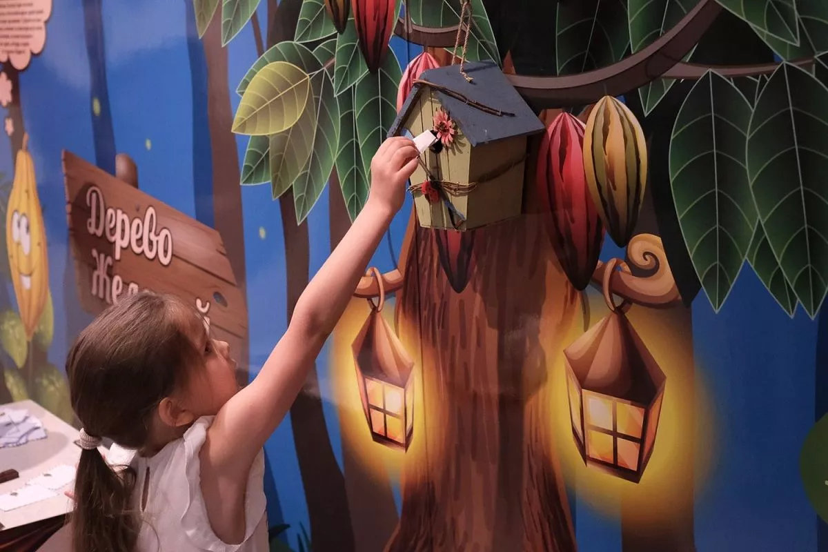 На выставке можно фотографироваться на фоне двухметровой шоколадной Эйфелевой башни, попробовать самые сладкие овощи в мире или сделать селфи в шоколадном зеркале.