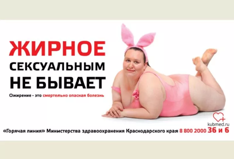 «Жирное не может быть здоровым», «Жирное сексуальным не бывает», «И целого стула мало» - эти слоганы призывают к борьбе с лишним весом.