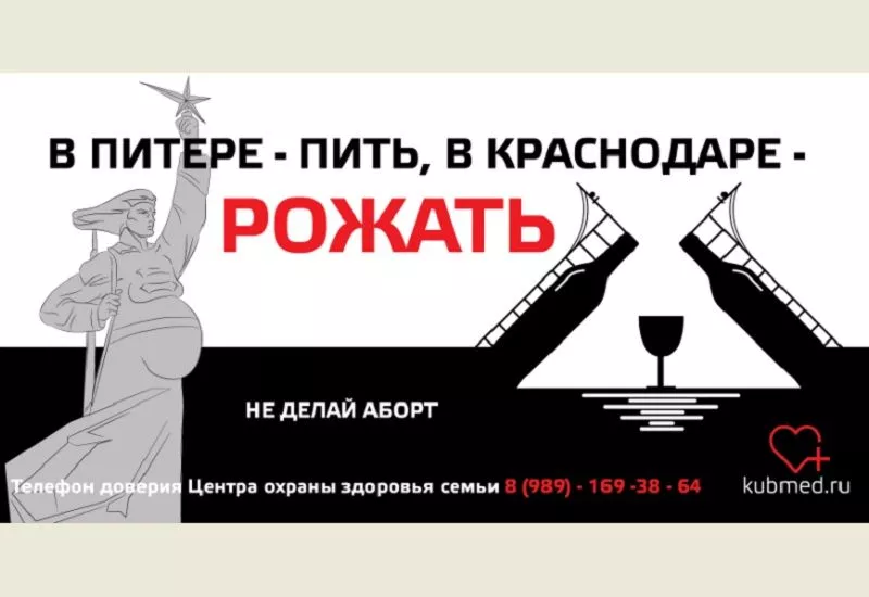 Так, надписи на графических картинках гласят: «В Питере пить - в Краснодаре рожать», «Кури, бухай, рожай уродов», «И большим мальчикам надо делать прививки», причем надпись сопровождает фото медсестры в костюме «для взрослых».