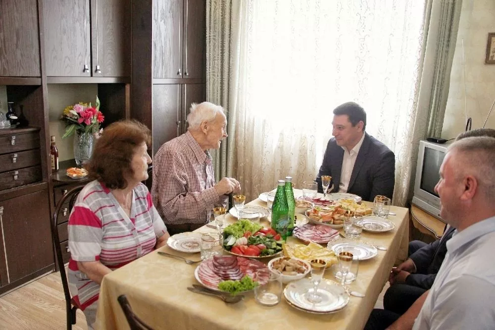- Совсем недавно — в канун годовщины Великой Победы, я был у вас в гостях, поздравлял с наступающим праздником. И говорил о том, что скоро вернусь с подарком. И сегодня очень рад выполнить обещание. За все, что вы сделали для нашей страны, за ваши подвиги и уникальную жизнь, принято решение городской Думы о присвоении вам звания Почетного гражданина нашего города. Мы гордимся тем, что в нашем городе живут такие люди, как Вы, — отметил Евгений Первышов.