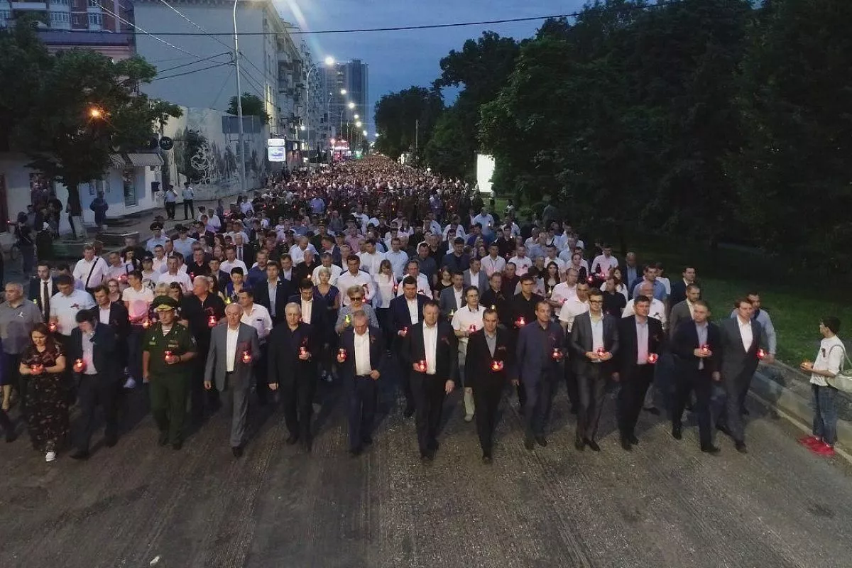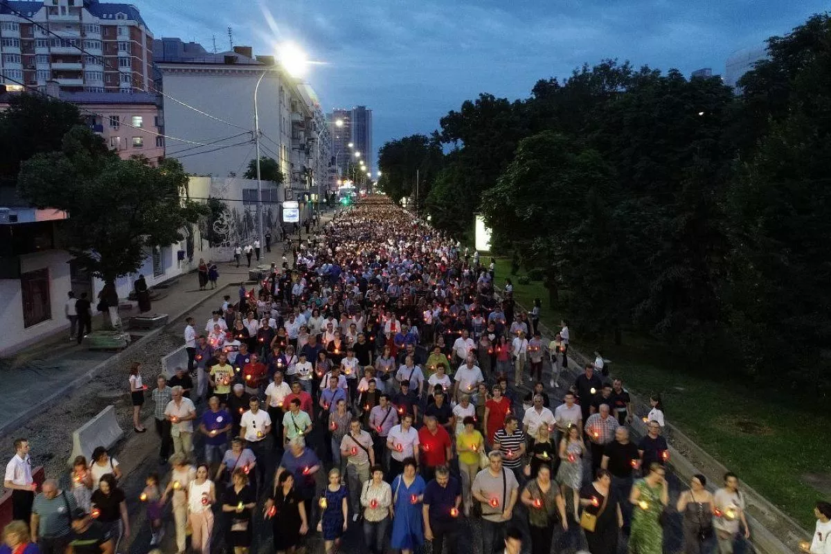 Краснодар присоединился к Всероссийской акции, посвященной Дню памяти и скорби. Более 16 тысяч жителей кубанской столицы 22 июня в 04.00 зажгли свечи и лампадки и прошли с ними по главной улице города к Вечному огню.