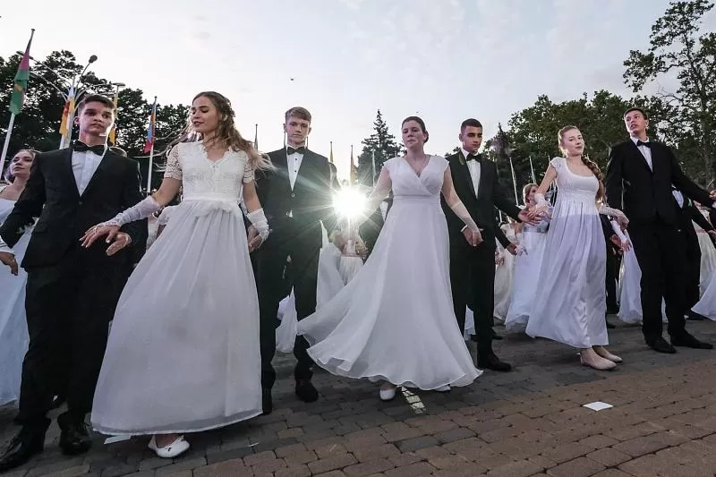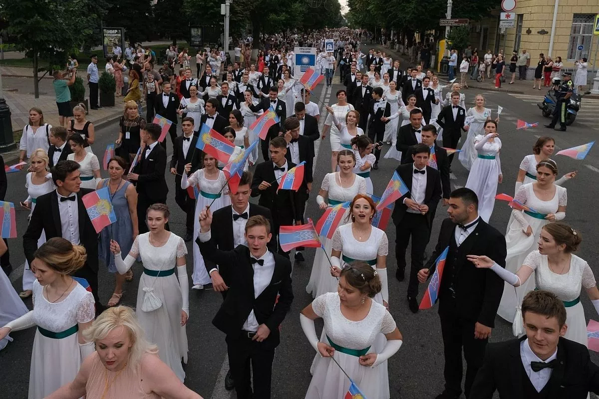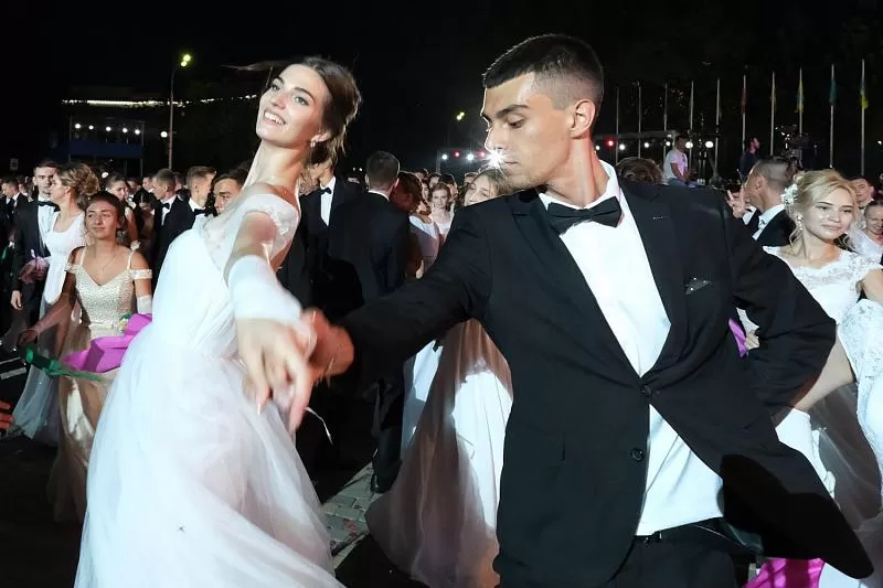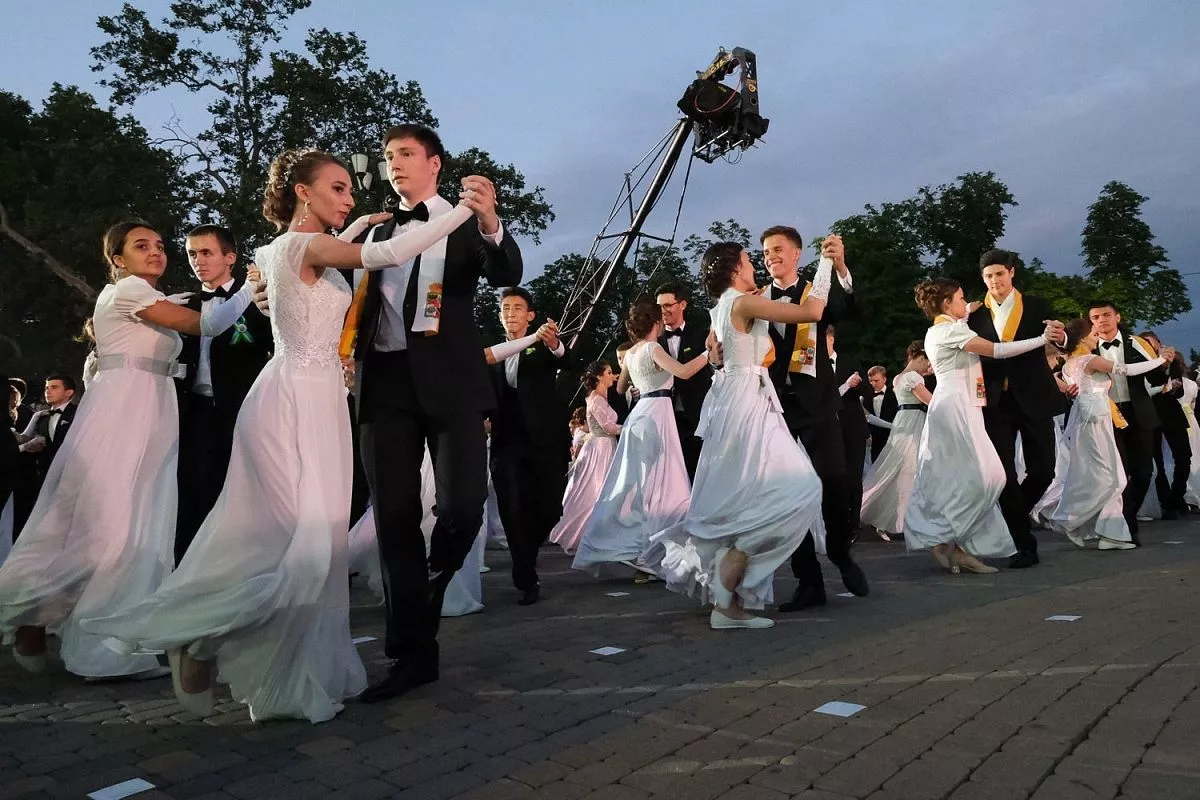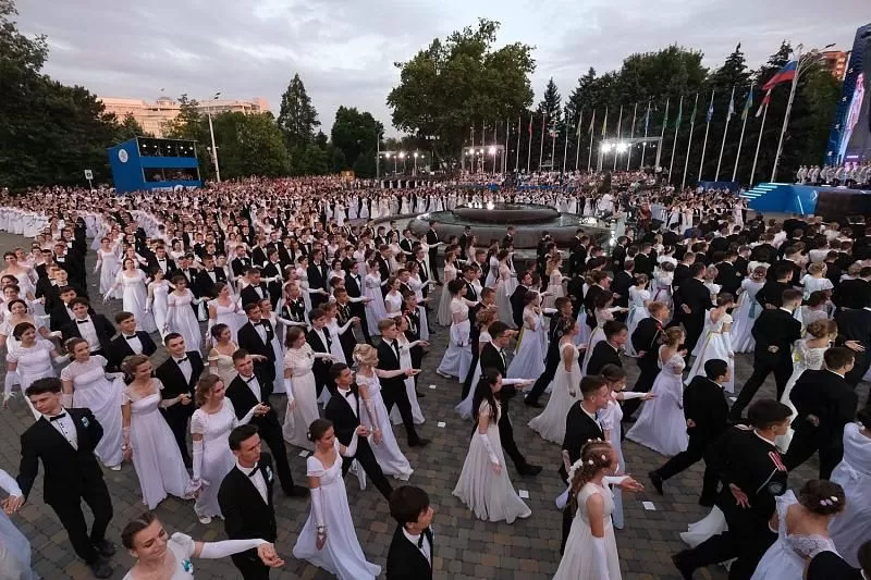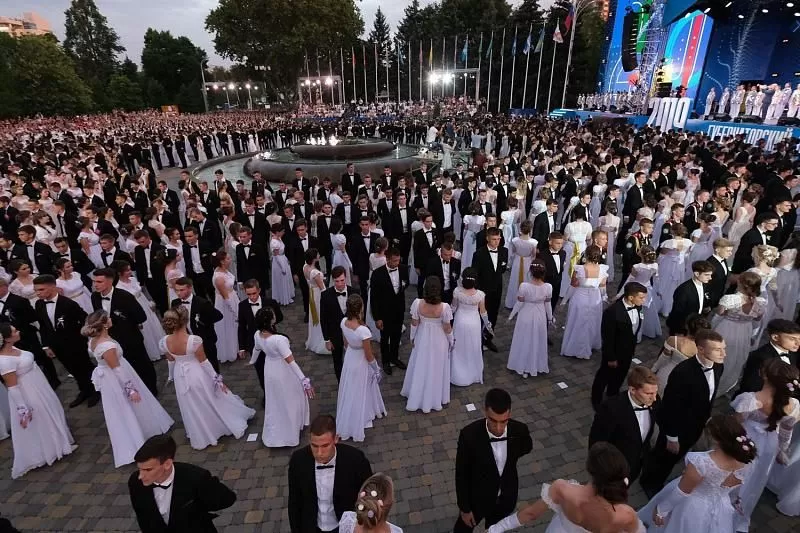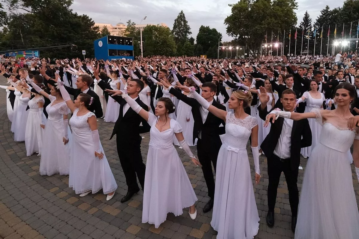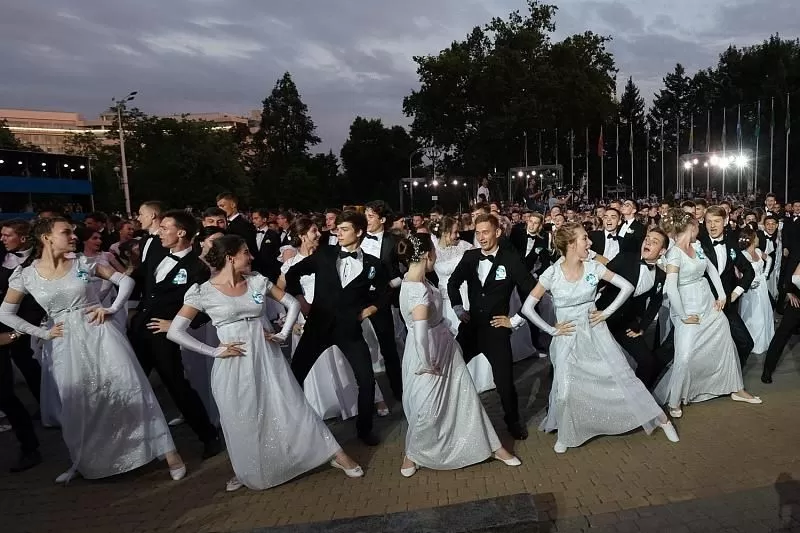 Во время бала более тысячи пар исполнили несколько танцев: вальс, полонез, джайв, хастл, казачий пляс и два флешмоба со зрителями. Также школьники Кубани присоединились к всероссийской акции выпускников «Твой ход» и запустили челлендж к 75-летию Великой Победы - все вместе спели «Катюшу».