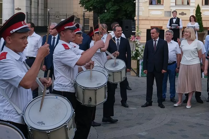 Уже здесь состоялся масштабный праздник. Так, с окончанием школы лучших одиннадцатиклассников Кубани поздравили глава края Вениамин Кондратьев и спикер регионального парламента Юрий Бурлачко.