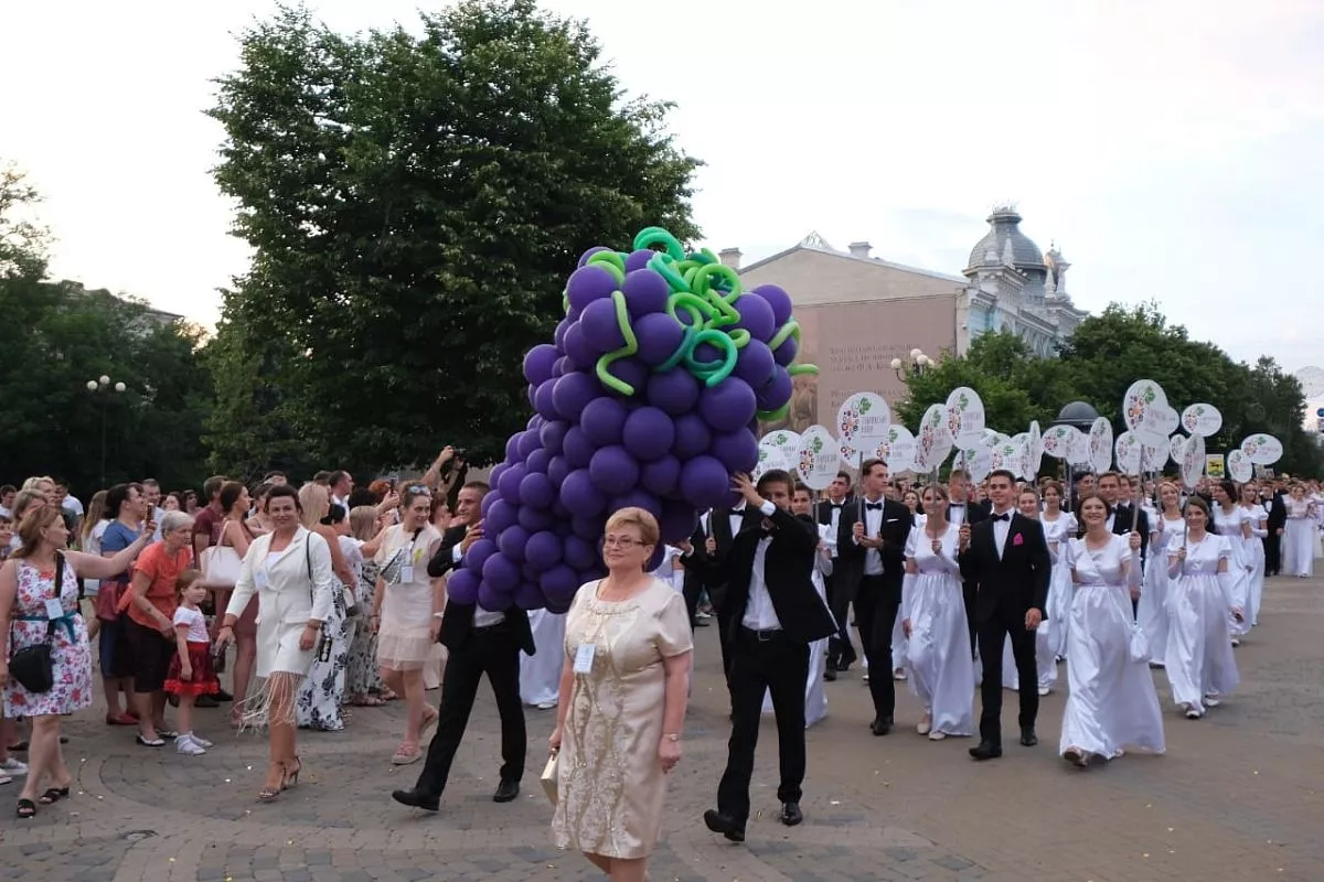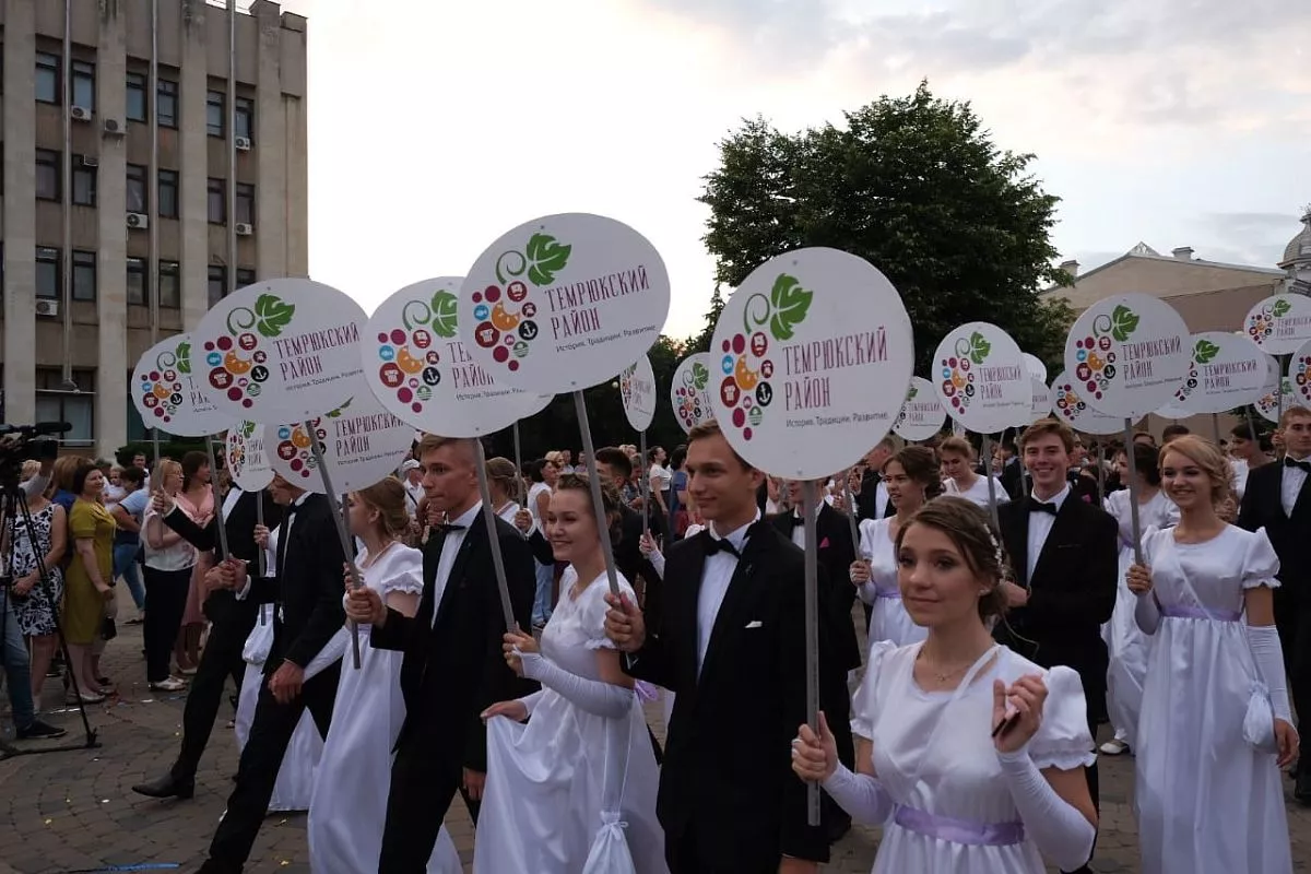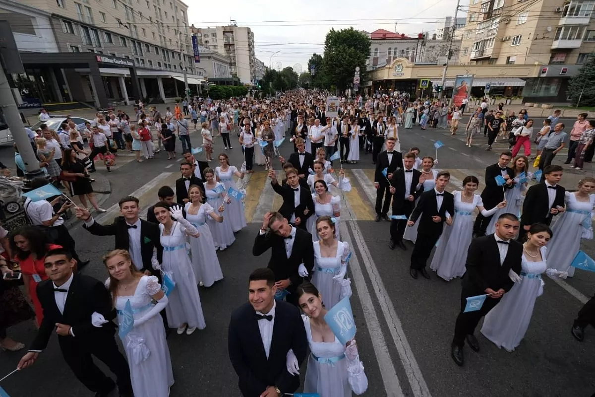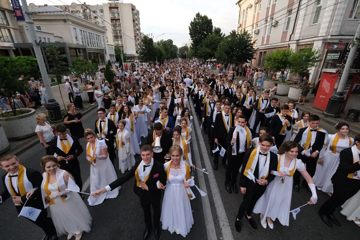 28 июня Губернаторский бал в Краснодаре начался с торжественного шествия выпускников по главной улице города. Шествие стартовало от сквера им. Георгия Жукова до площади перед зданием Законодательного Собрания Краснодарского края. Каждая колонна представляет определенный район Кубани.