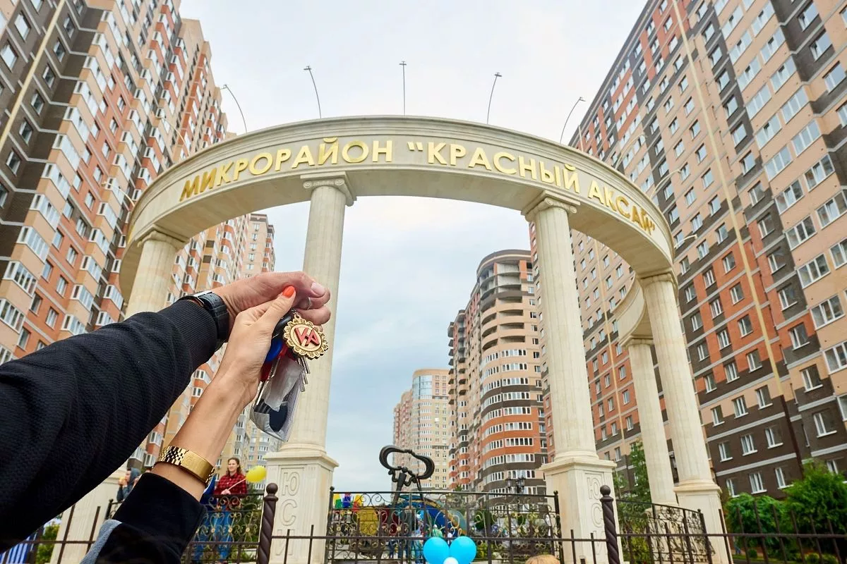 Микрорайон «Красный Аксай» - один из самых масштабных строительных проектов в Ростовской области. В один день застройщик сдал сразу 3 дома с благоустроенной прилегающей территорией. Во дворах 12,15 и 16 литеров установлены детские и спортивные площадки. Завершено строительство прогулочной аллеи, на которой в этот день прошло торжественное открытие нового арт-объекта «Ключ», символизирующего крепкие семейные узы.
