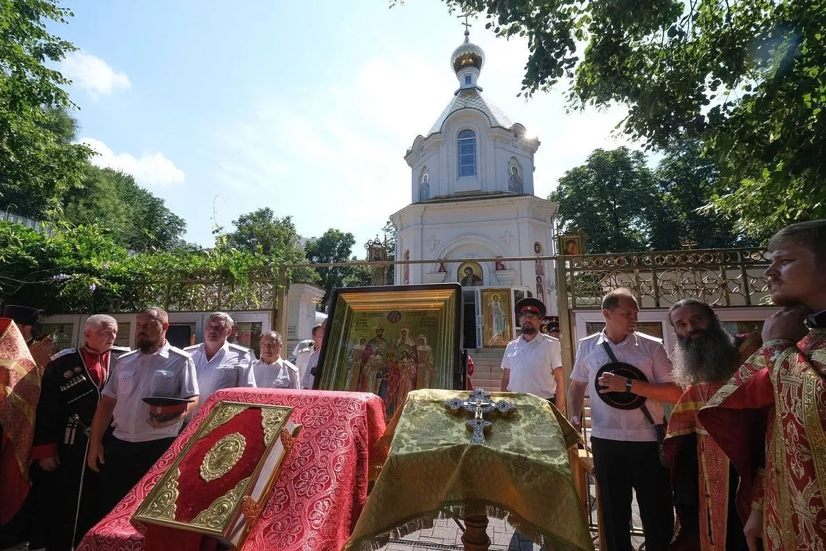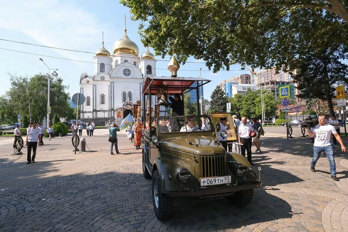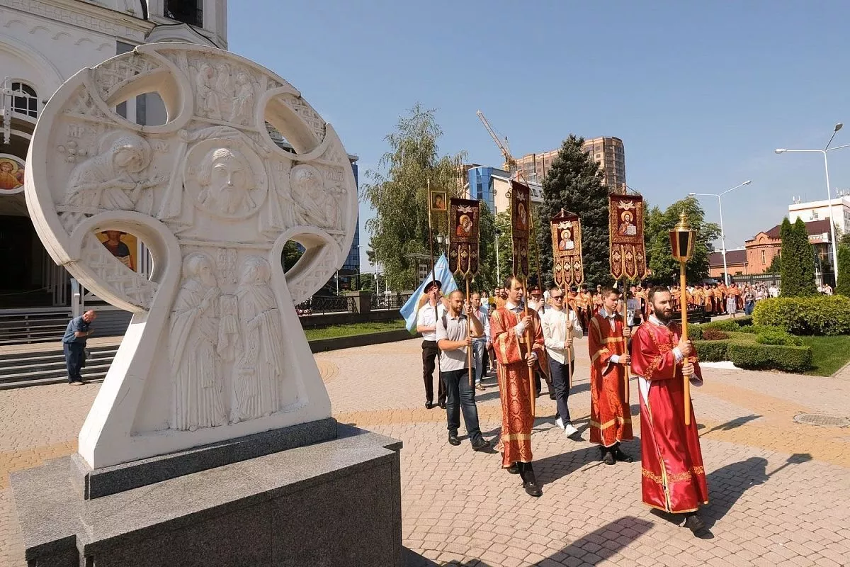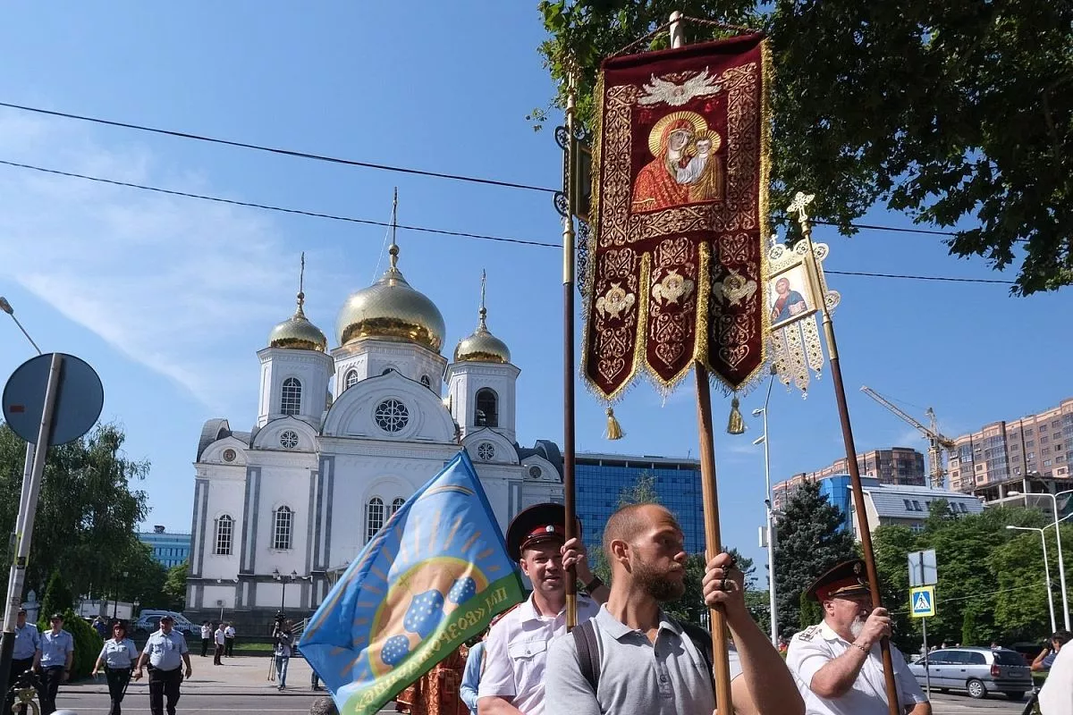 Несколько сотен краснодарцев прошли поп улицам краевой столицы от Войскового Собора святого благоверного князя Александра Невского до храма-часовни Александра Невского в сквере имени Г.К. Жукова. Там состоялся молебен.