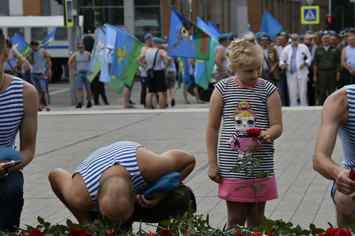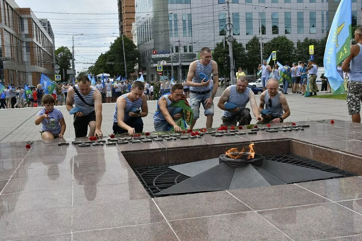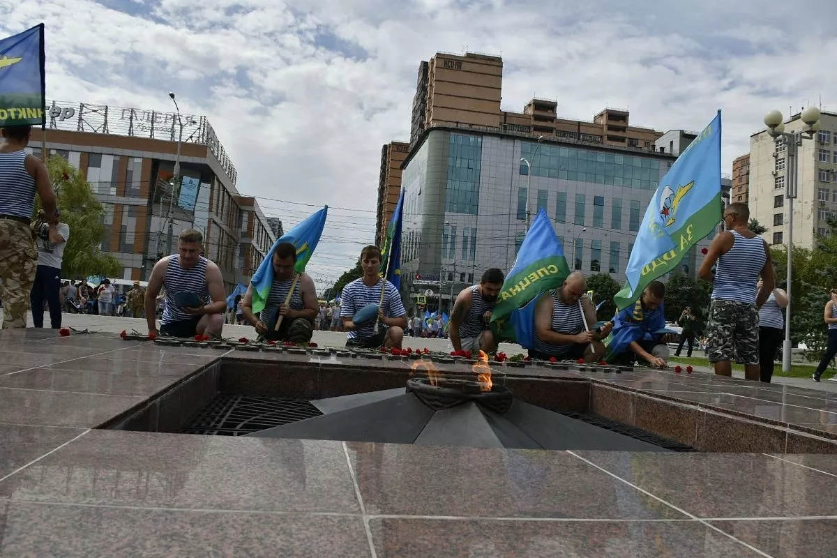 Сотни краснодарцев торжественно прошли по улице Красной и возложили цветы к Вечному огню. Все - в тельняшках и голубых беретах. Многие украсили свои автомобили флагами. Так в столице Кубани отмечают День ВДВ.