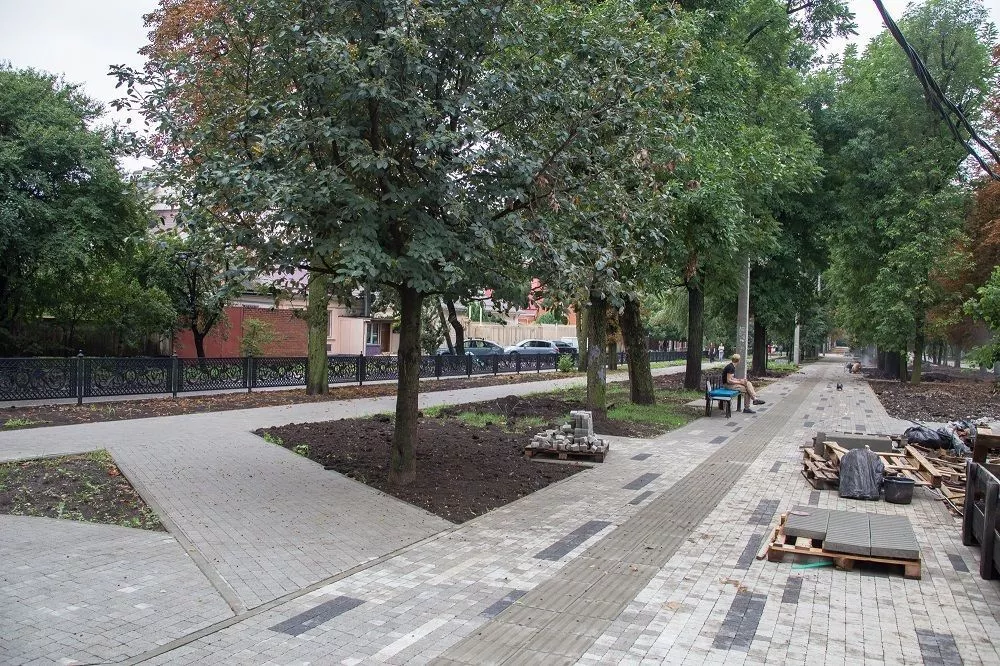 - Уже демонтирован старый слой асфальта, вместо него укладывают 2,5 тысячи квадратных метров тротуарной плитки. Дополнительно к уже существующим высадят 87 молодых деревьев и 3849 кустарников. Установят 34 лавочки и 34 урны. Сделают освещение и ограждение, - сообщили в пресс-службе администрации Краснодара.