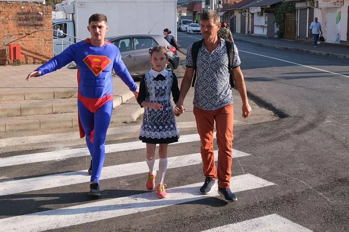 Супермен и Супервумен - неожиданно появились на дорогах Краснодара в День знаний. В этот раз они не планировали никого спасать, их главная цель была - напомнить школьникам о правилах дорожного движения. Ведь по статистике, именно в первые осенние месяцы - в сентябре и октябре, число аварий с участием детей резко возрастает.