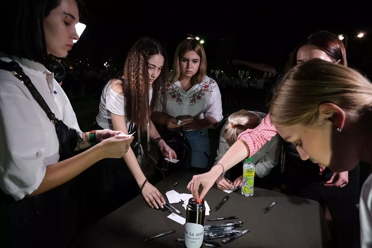 — В этот трагический день краснодарцы — участники акции — написали свои послания с призывом к миру во всем мире, словами памяти и скорби по всем погибшим в террористических актах, — сказал заместитель главы Краснодара Алексей Удовенко.