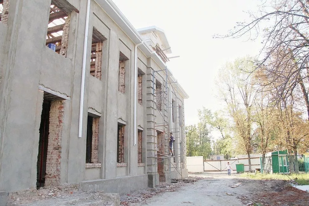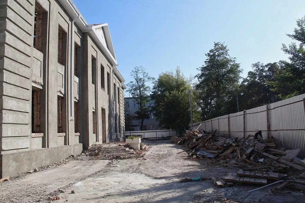Сейчас в двухэтажном корпусе идет монтаж кровли. Рабочие готовятся к заливке межэтажных перекрытий. Одновременно идет ремонт фасада.