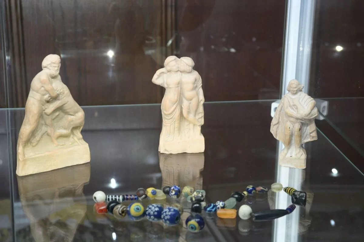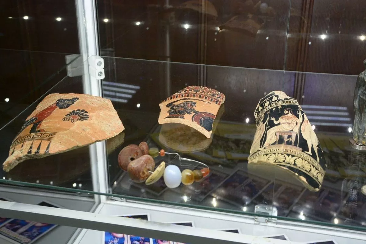 На выставочных стеллажах можно увидеть уникальные артефакты, которые были найдены во время археологических раскопок на объектах античного наследия.
