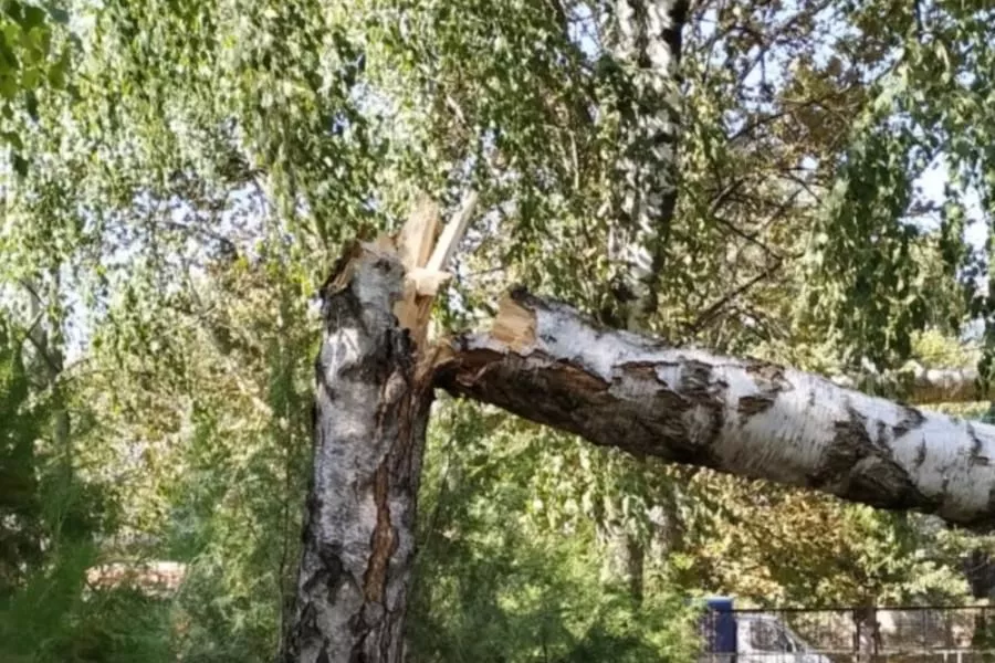На территории детского сада, расположенного на улице Трудовой Славы, 18 сентября на игровую площадку упало дерево. В этот момент на площадке никого не было.