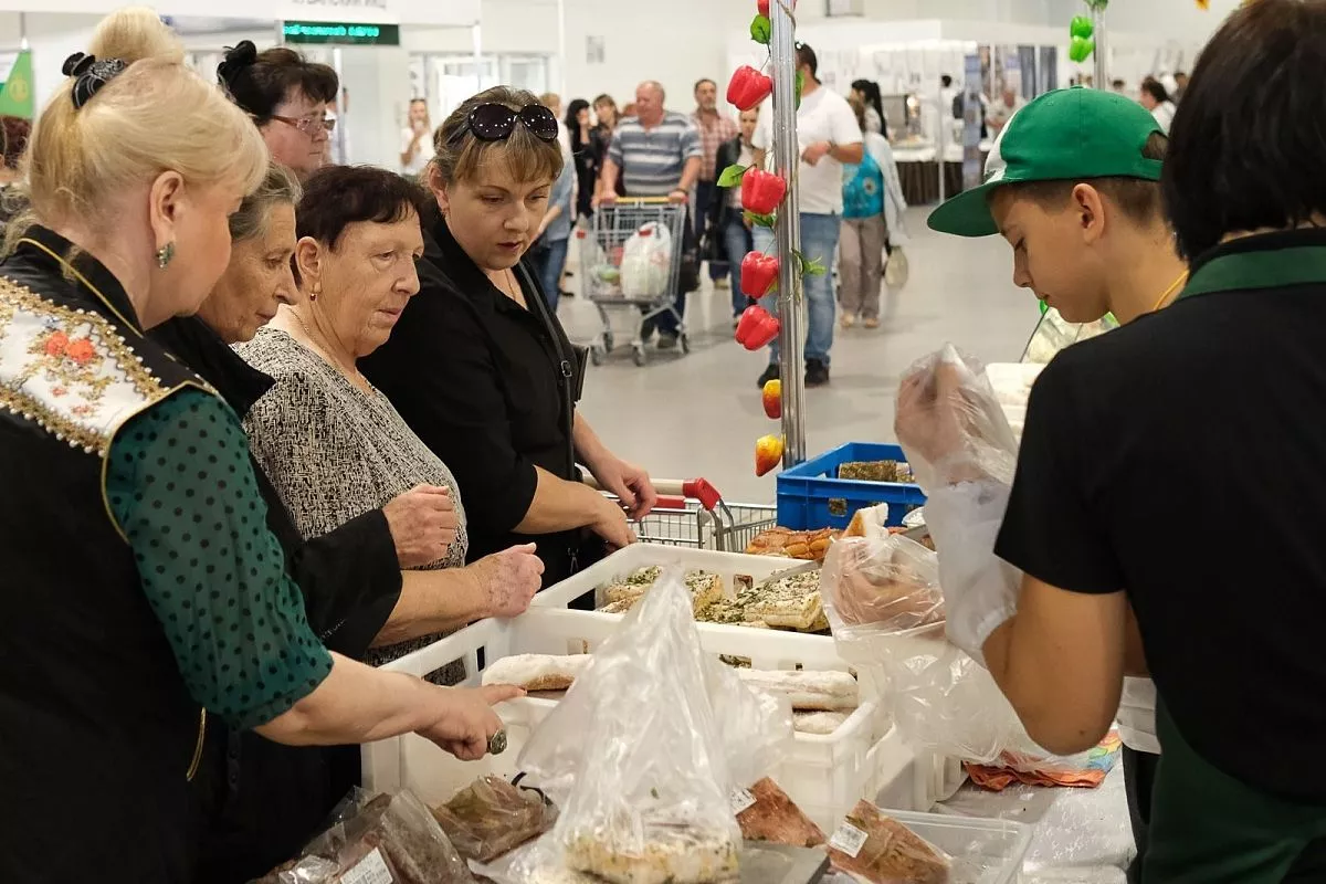 В выставке принимают участие порядка 800 сельхозпроизводителей региона, в том числе получивших торговый знак «Сделано на Кубани».