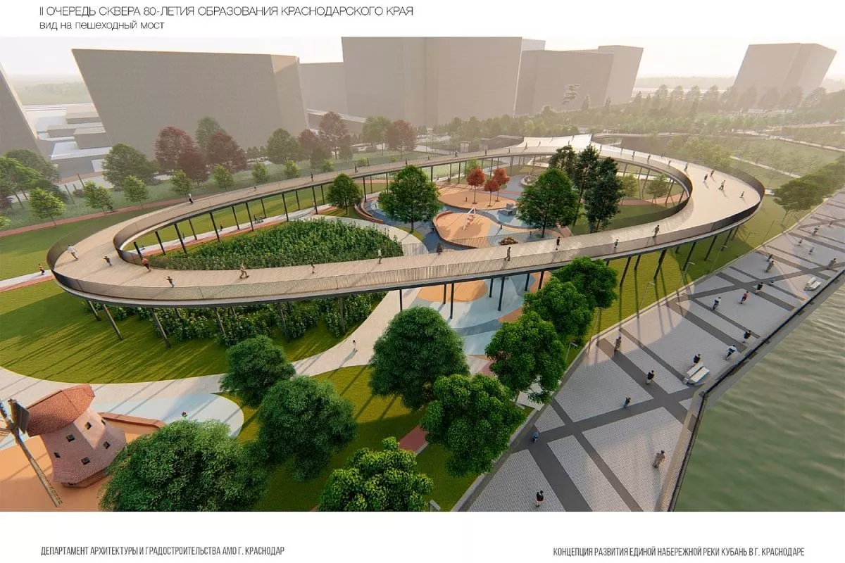 — Проект интересный и амбициозный, который нам предстоит поэтапно реализовать. Это задача нескольких лет, зато в перспективе мы получим единую пешеходную набережную, большую зону отдыха вдоль реки от Рождественского парка в Юбилейном микрорайоне до парка имени 30-летия Победы, — отметил мэр Краснодара Евгений Первышов.