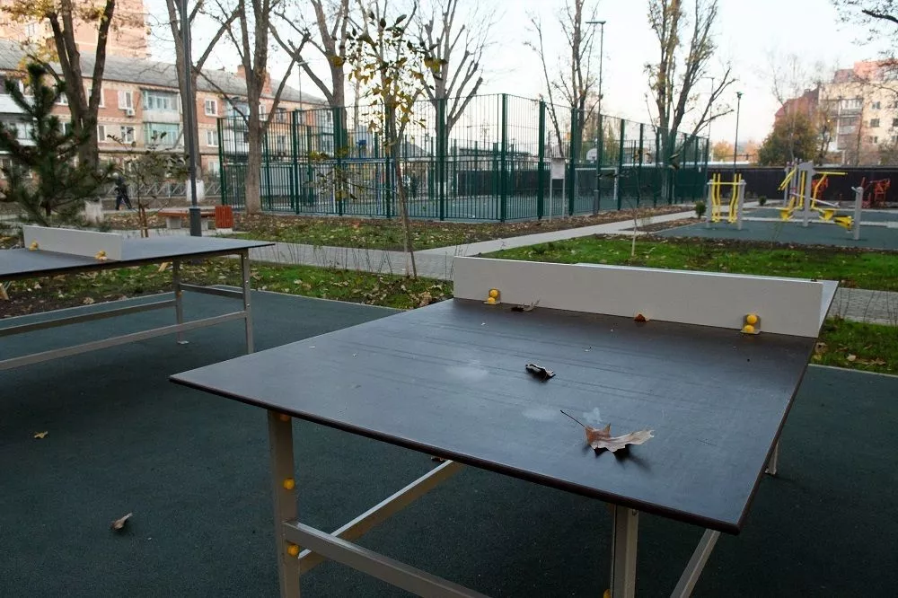 В сквере в Фестивальном микрорайоне специалисты сделали пять спортивных и детскую площадку, поставили теннисные столы, отремонтировали освещение. Благоустроенную территорию посетил мэр Краснодара Евгений Первышов.