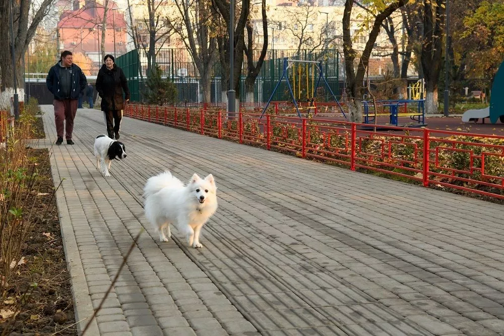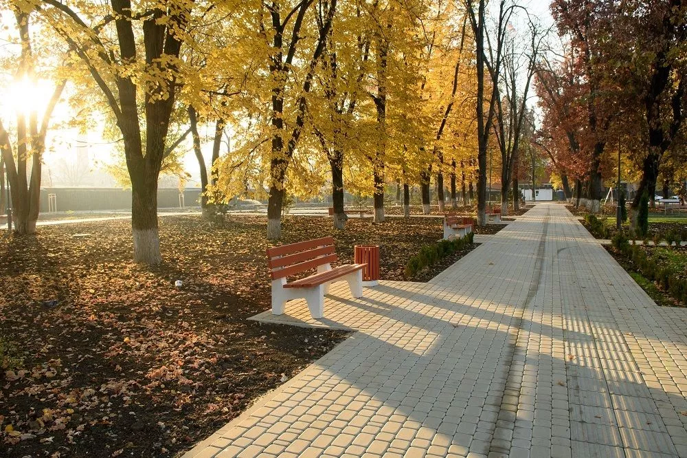 Здесь обновили пешеходные дорожки — на них уложили почти 7,8 тысячи квадратных метров тротуарной плитки, установили 9 детских игровых и одну спортивную площадку, уличные тренажеры, 60 новых светильников и 113 лавочек.