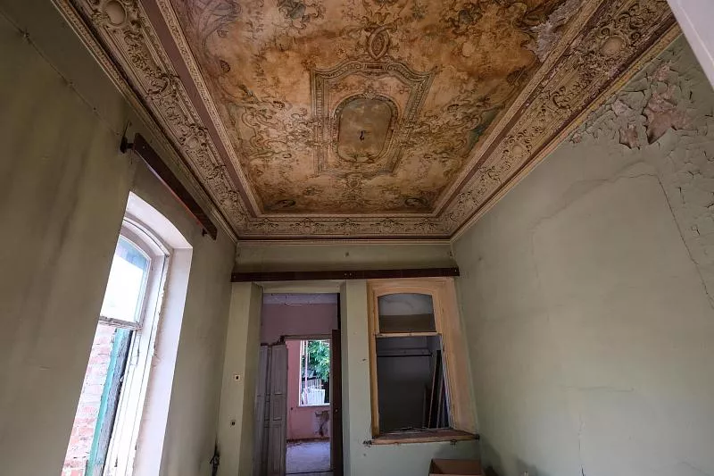 Когда сюда прибыли рабочие и начали выносить оконные рамы, разбирать крышу… И тут выяснилось, что за неприметными стенами кроется роскошный интерьер: лепные фризы, альфрейная и масляная роспись потолков и стен, художественное оформление печей.