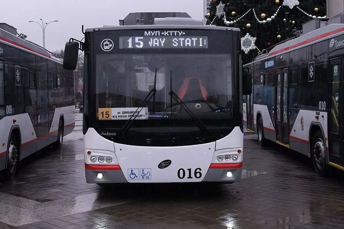 Открытая презентация новых троллейбусов прошла на Главной городской площади с 10.00 до 12.00. Троллейбусы с автономным ходом 1 декабря вышли на маршрут № 15 «Ул. Домбайская — ж/д вокзал Краснодар-1» и заменили на нем автобусы.