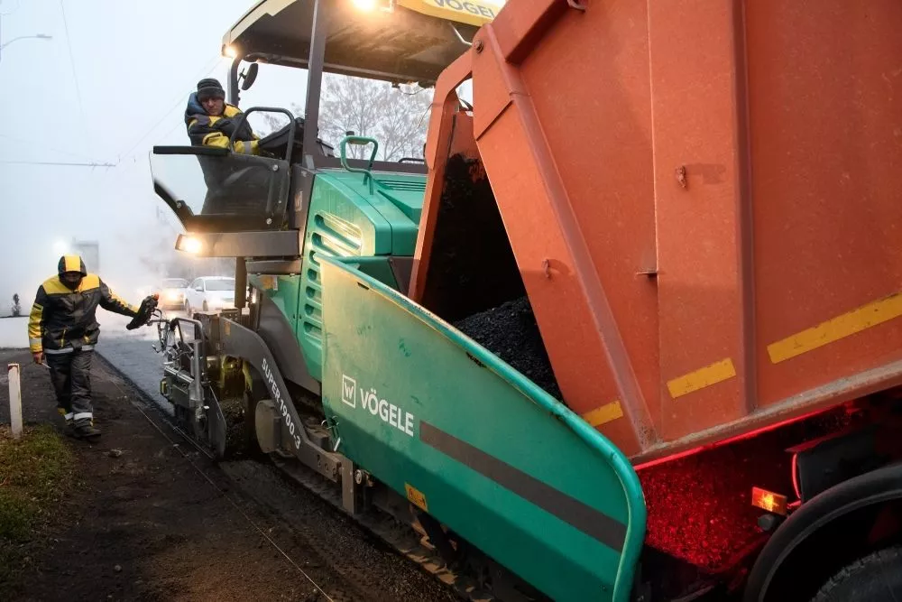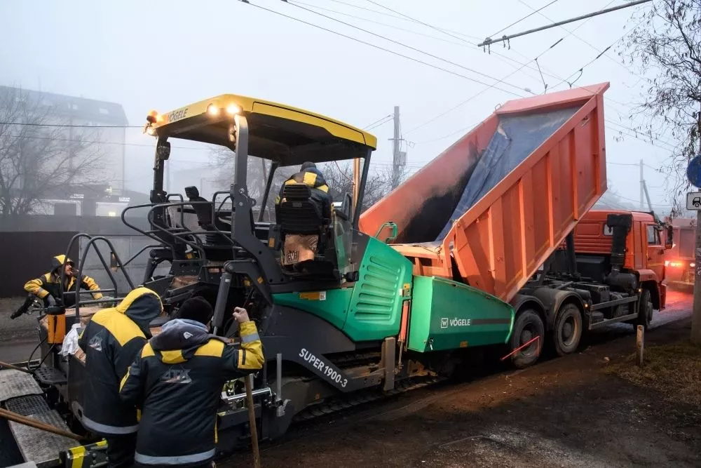 Работы будут идти круглосуточно: ночью — в основном фрезерование старого покрытия проезжей части, утром и днем — укладка нового асфальта.