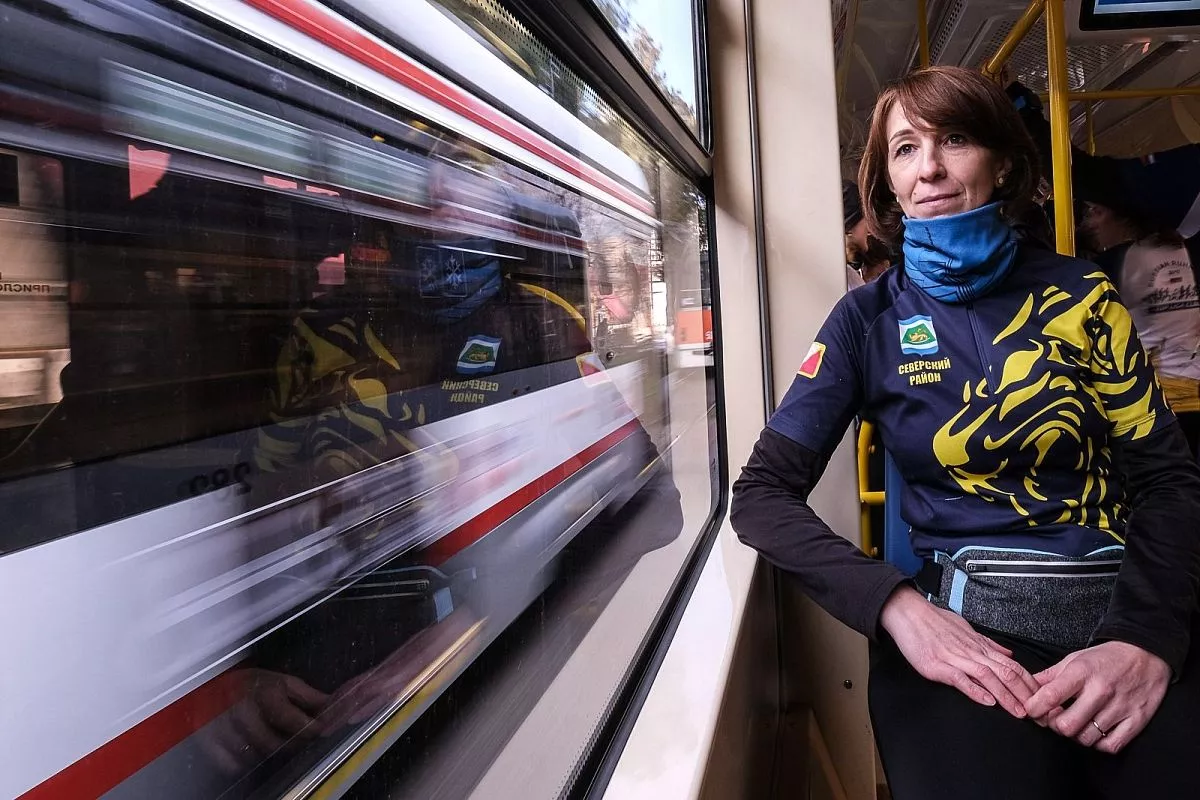 А вагон отправился далее по маршруту. Ему предстояло преодолеть 13 остановок. Первыми финишировали бегуны. Всем участникам забега вручили грамоты и сувениры.