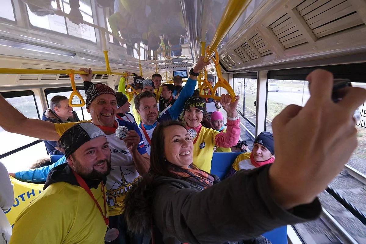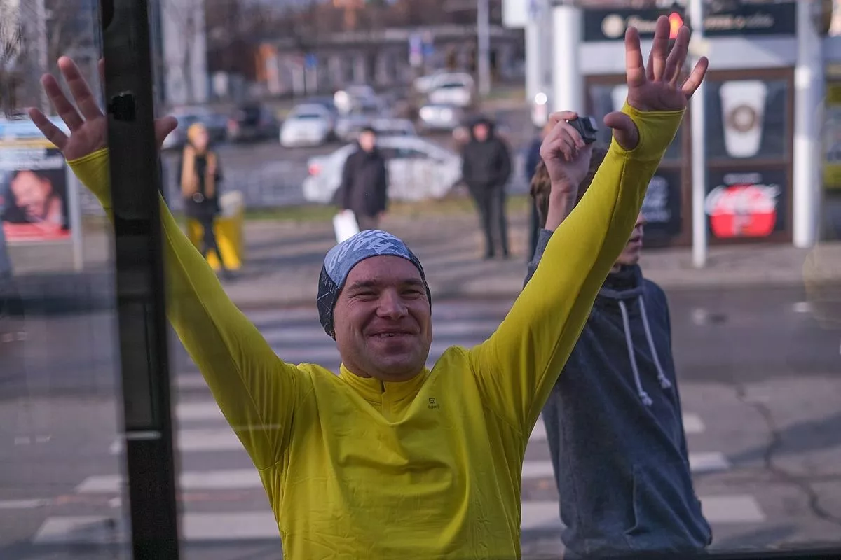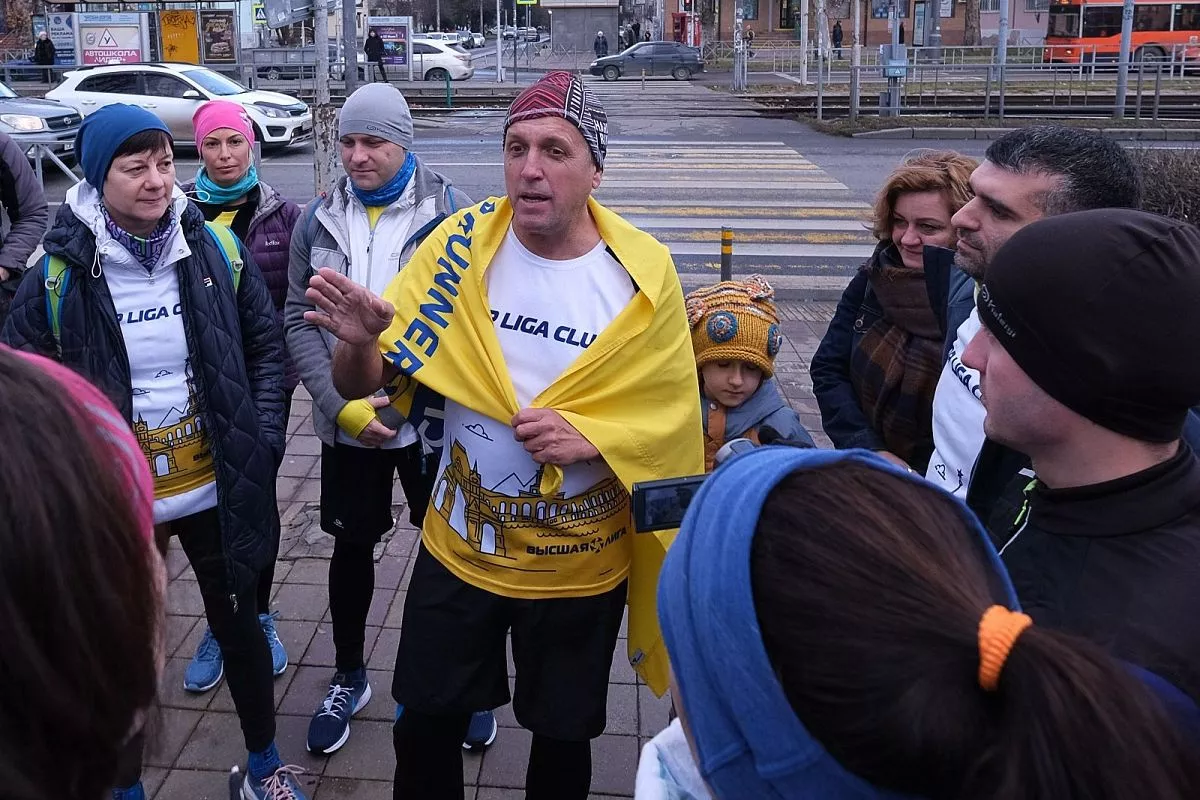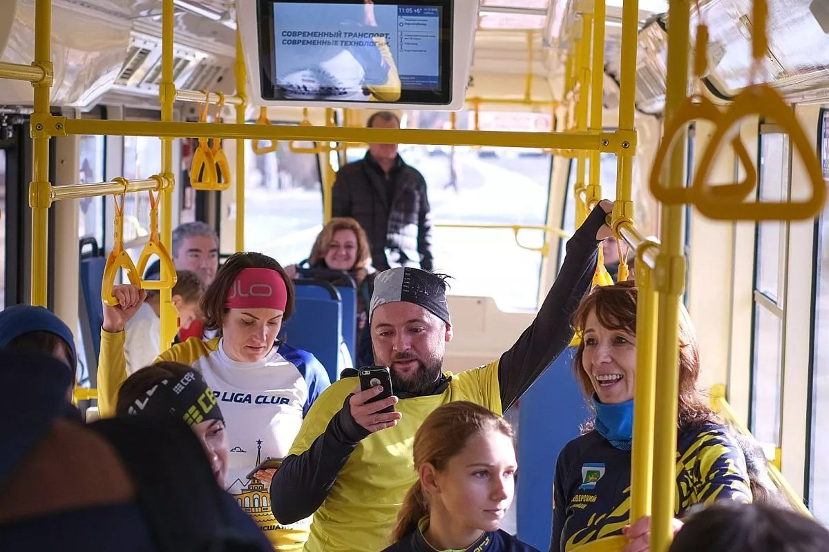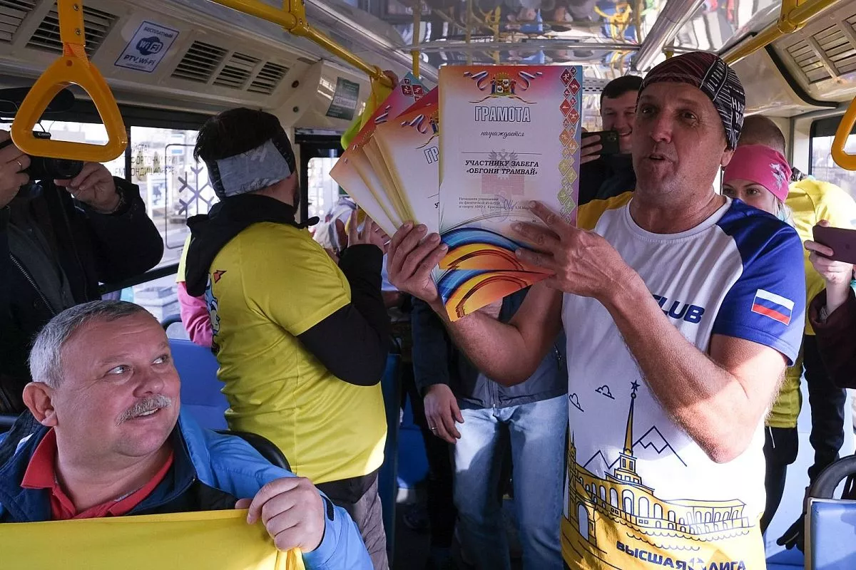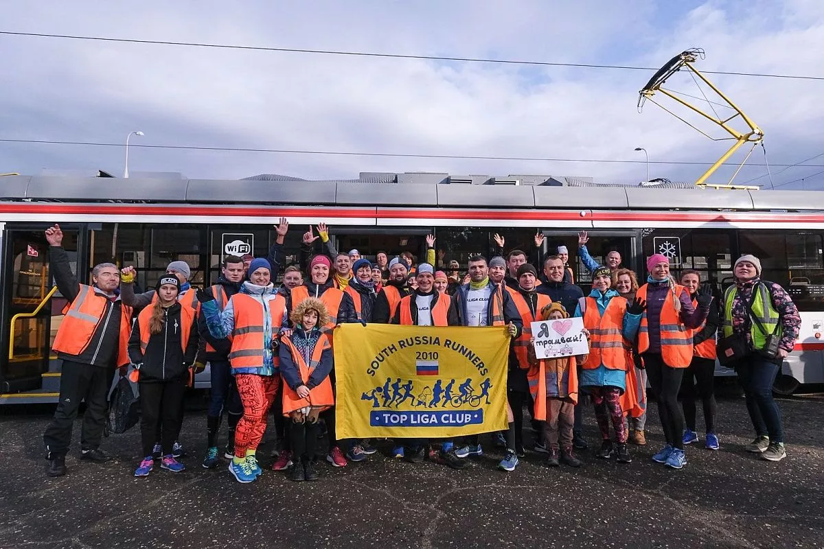 После чего трамвай № 4 вместе с пассажирами-бегунами отправился по маршруту. На улице Шевченко спортсмены покинули вагон и побежали к финишу до ТРК «Сити Центр» - по улице Ставропольской — через Городской Сад. Всего 5 км.
