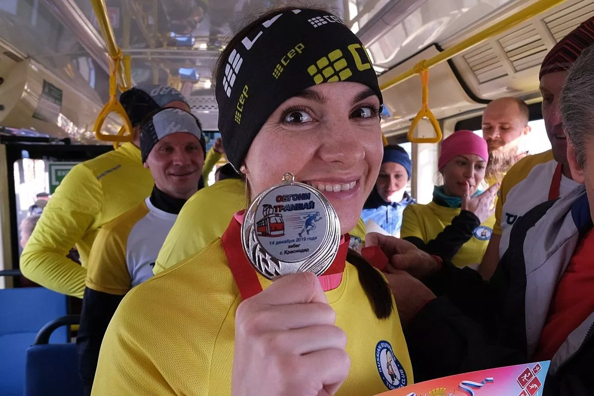 14 декабря в краевой столице прошла акция «Обгони трамвай» с участием 40 спортсменов и нового трамвая серии «Кубань».