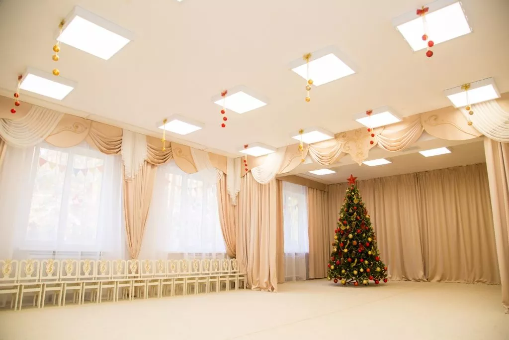 В детском саду просторные и светлые помещения, стены в коридорах расписаны вручную. Имеется современно оснащенный пищеблок, актовый зал с пианино, гардероб для детских костюмов, в группах много развивающих игрушек, оборудованы детские площадки.