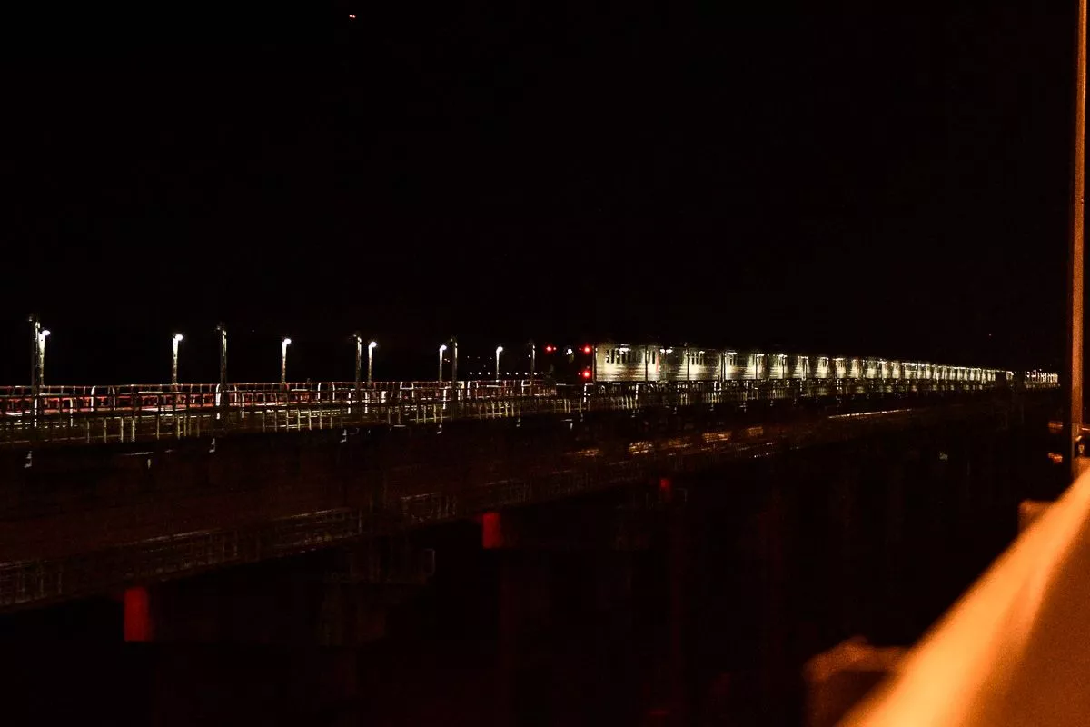 Начальник поезда сообщил пассажирам по громкой связи о том, что через несколько минут состав начнет движение по Крымскому мосту. Многие старались снять проезд поезда по мосту и сам Крымский мост на камеры мобильных телефонов.